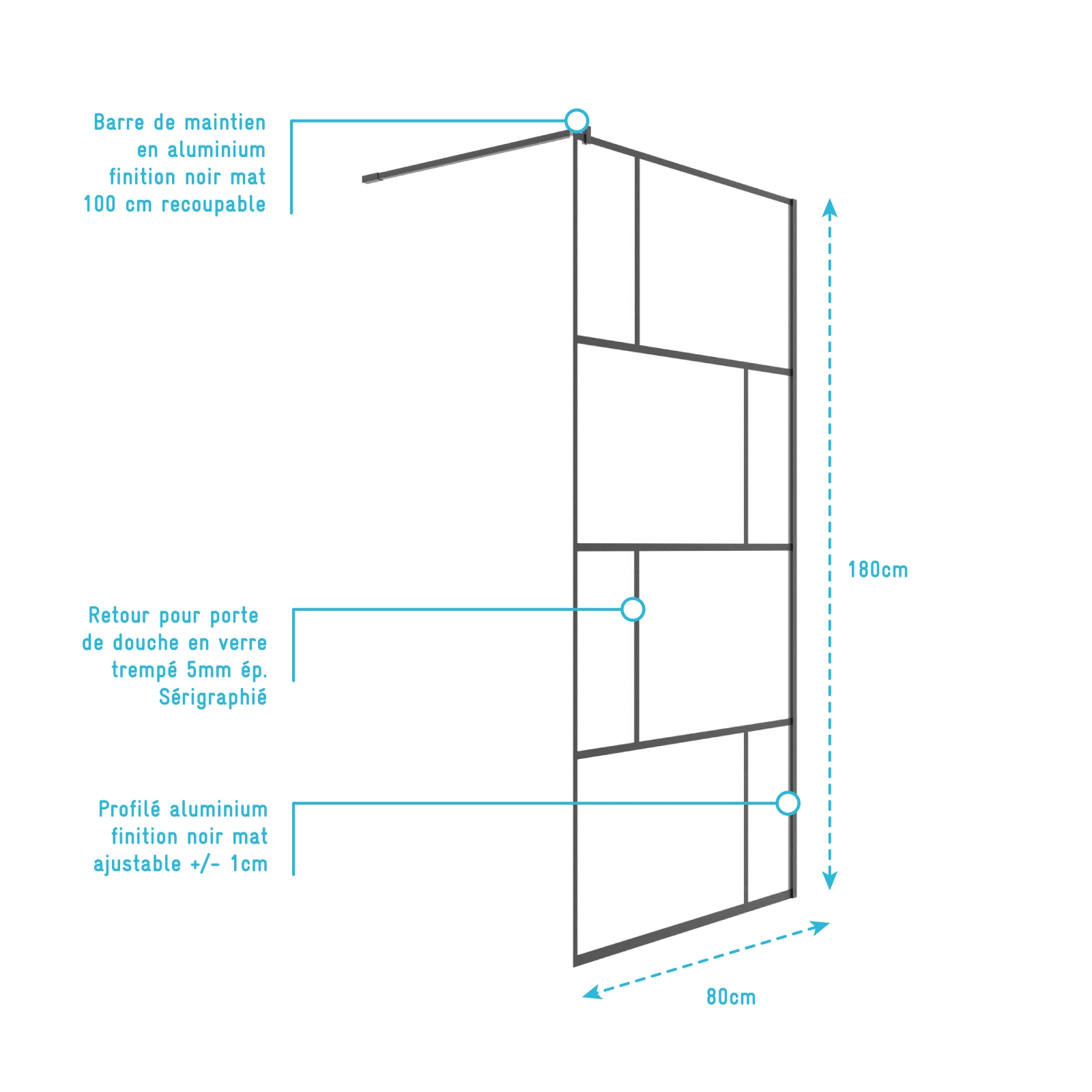 Paroi de Retour 80x180cm Sérigraphie Briques - Verre Anticalcaire 8mm - DARK BLOCS