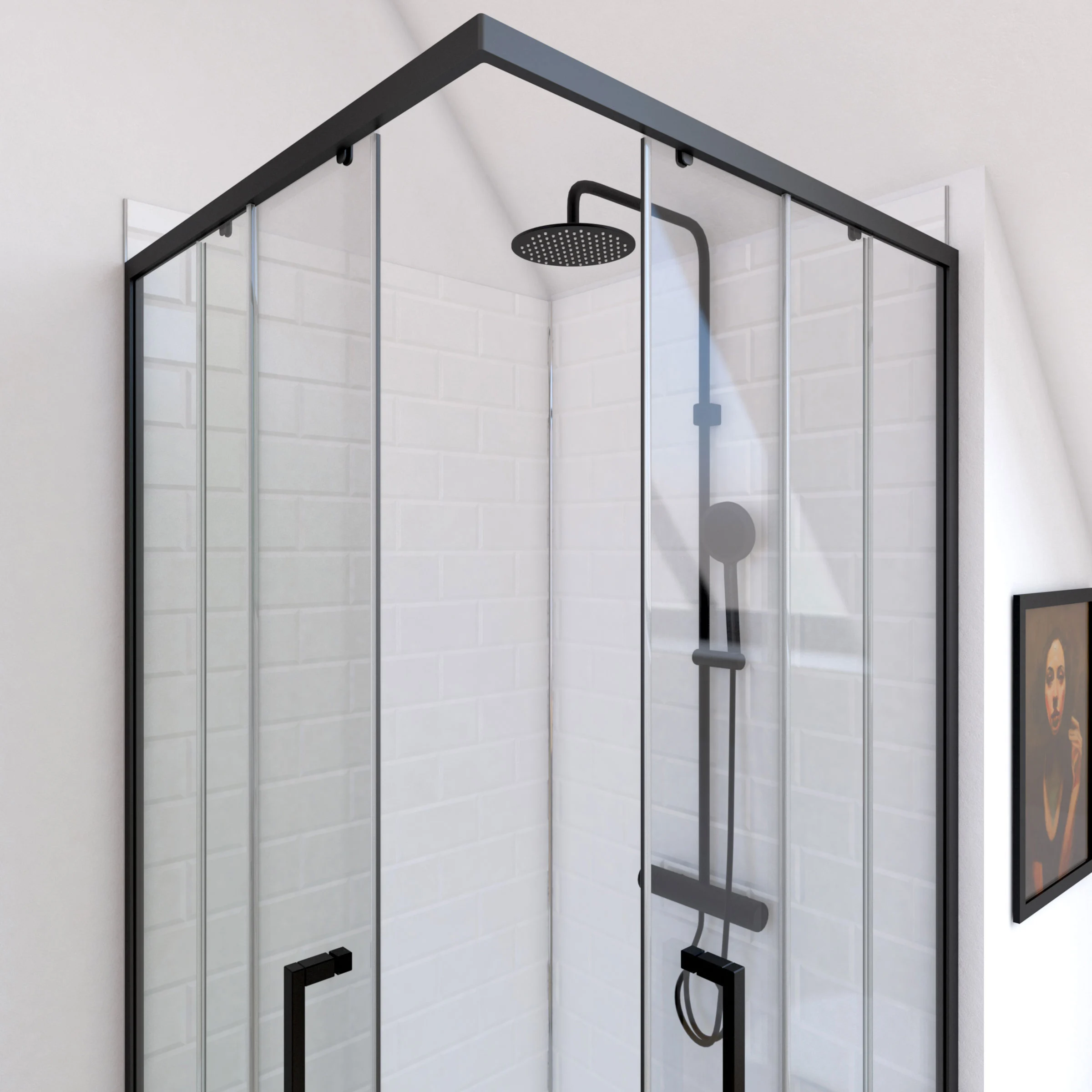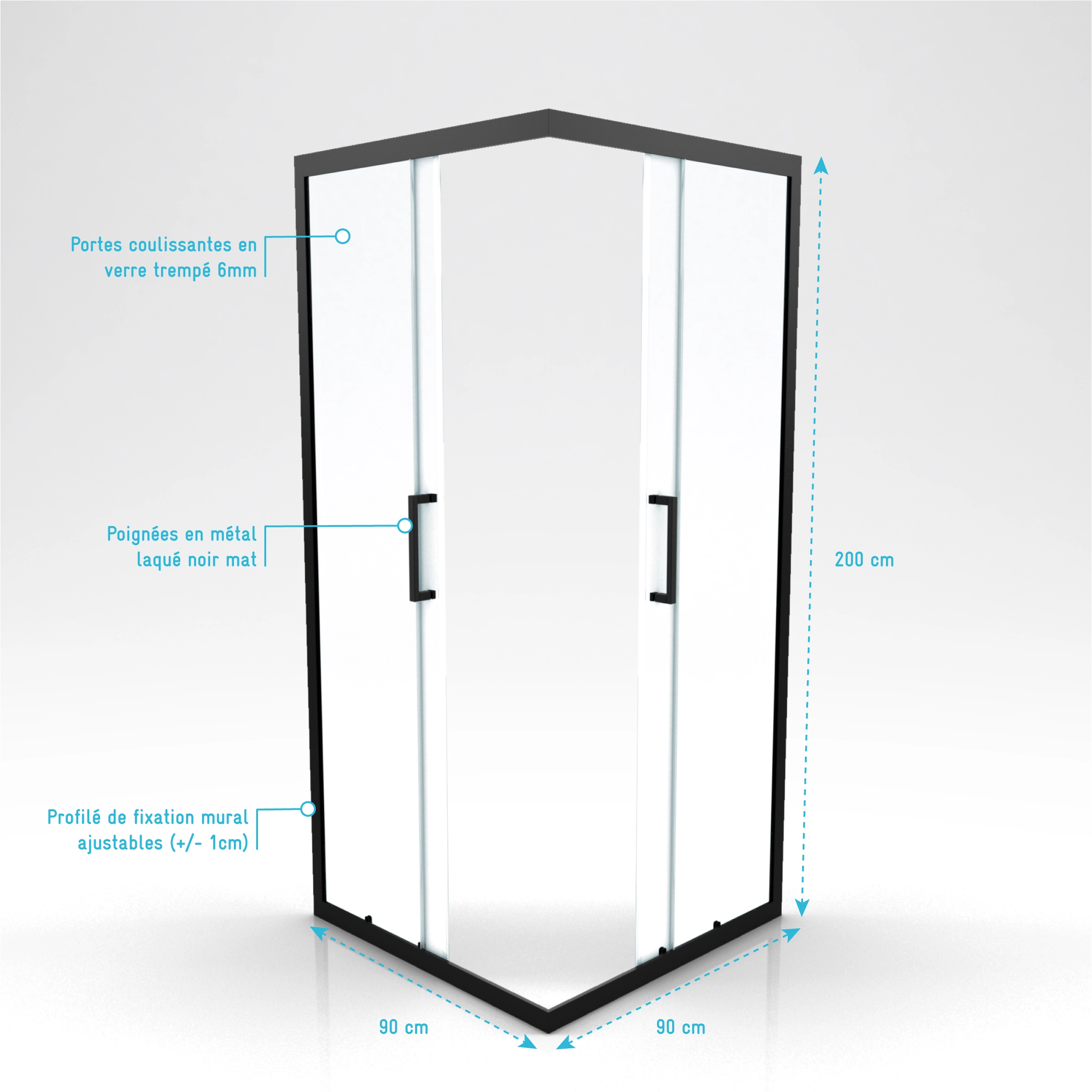 11 avis pour Paroi porte de douche carrée – 90x90x200 cm – PROFILE NOIR MAT – verre trempé 6mm