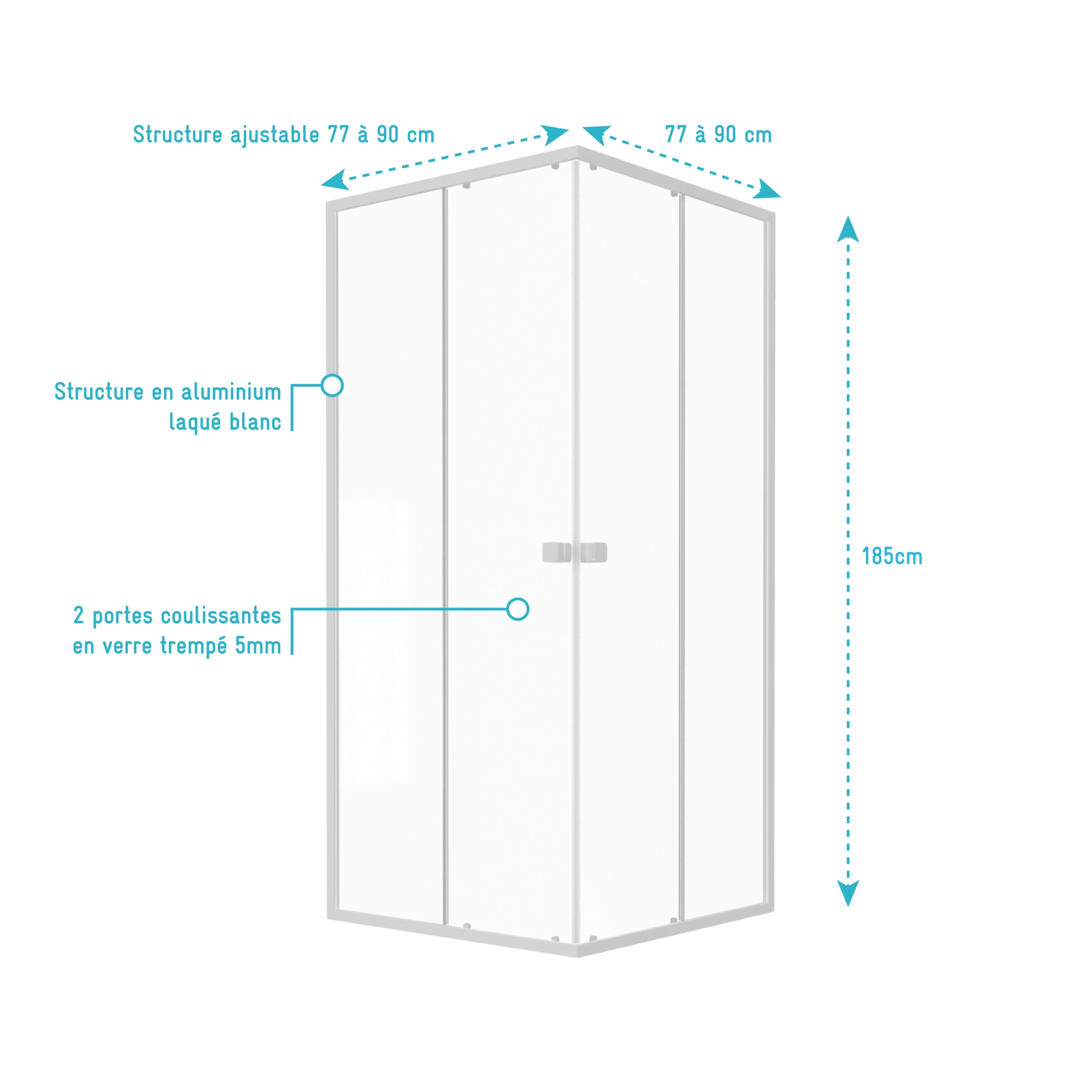 16 avis pour Paroi porte de douche carrée blanc extensible 77 à 90cm de largeur – verre transparent – WHITY