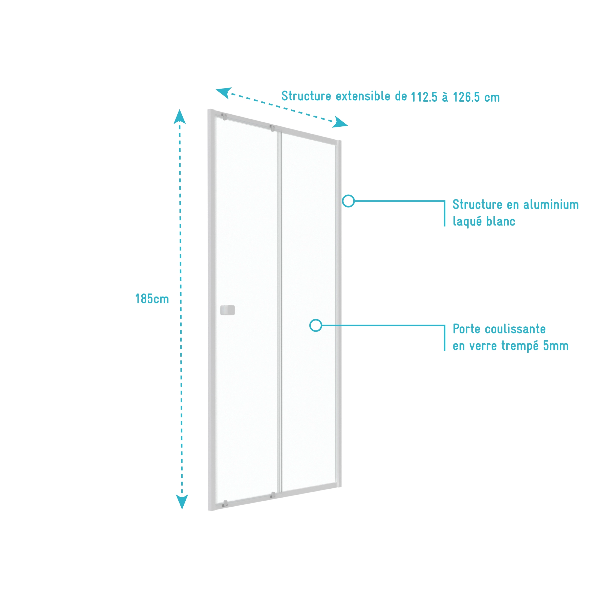 Paroi porte de douche Coulissante blanc 120x185cm – extensible – WHITY slide 120