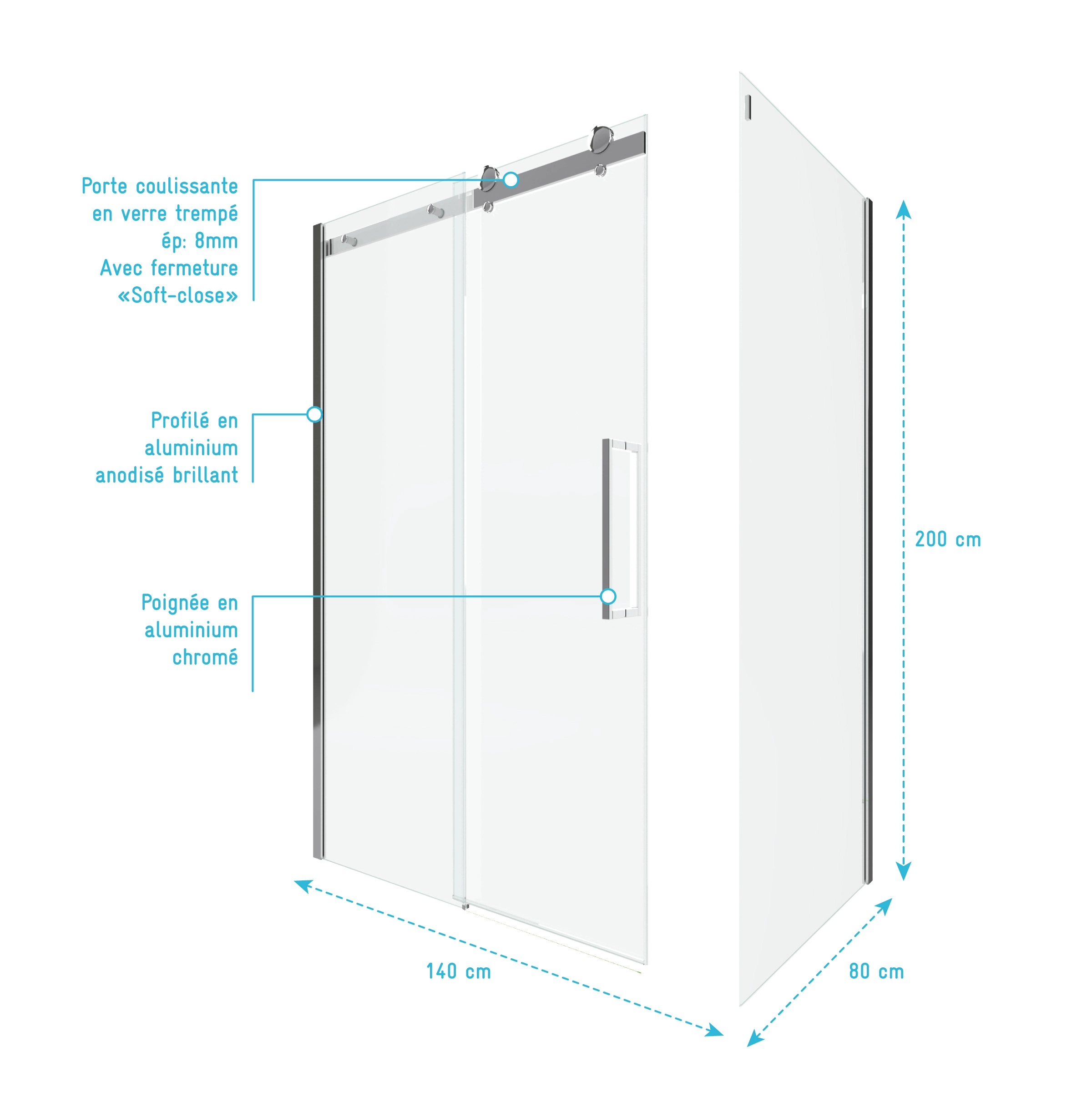 1 avis pour PAROI PORTE DE DOUCHE COULISSANTE + RETOUR 140X80cm – RAILROAD CHROMED 140 FRONT-80