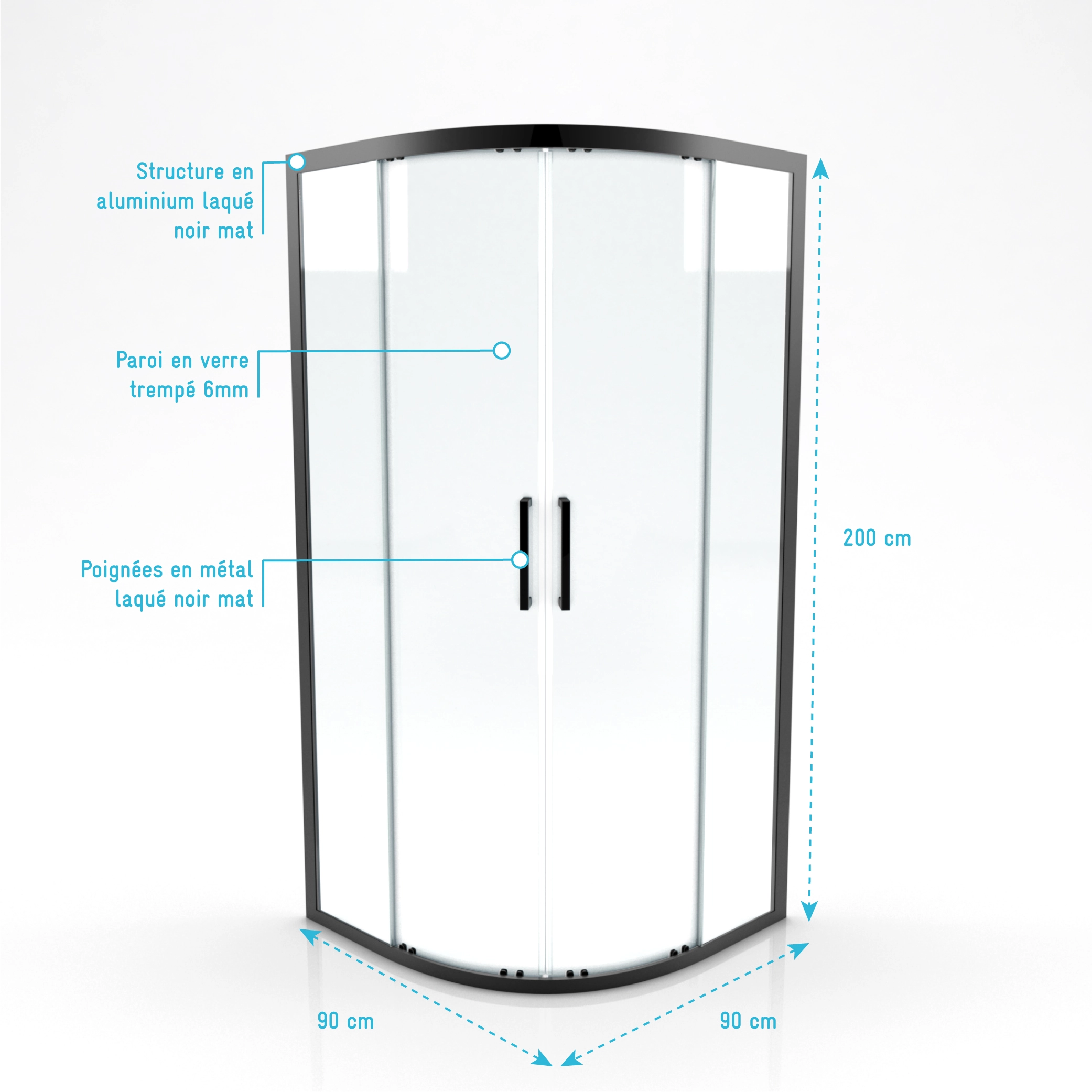 25 avis pour Paroi porte de douche quart de cercle 90x90x200cm – PROFILE NOIR MAT – verre trempé 6mm