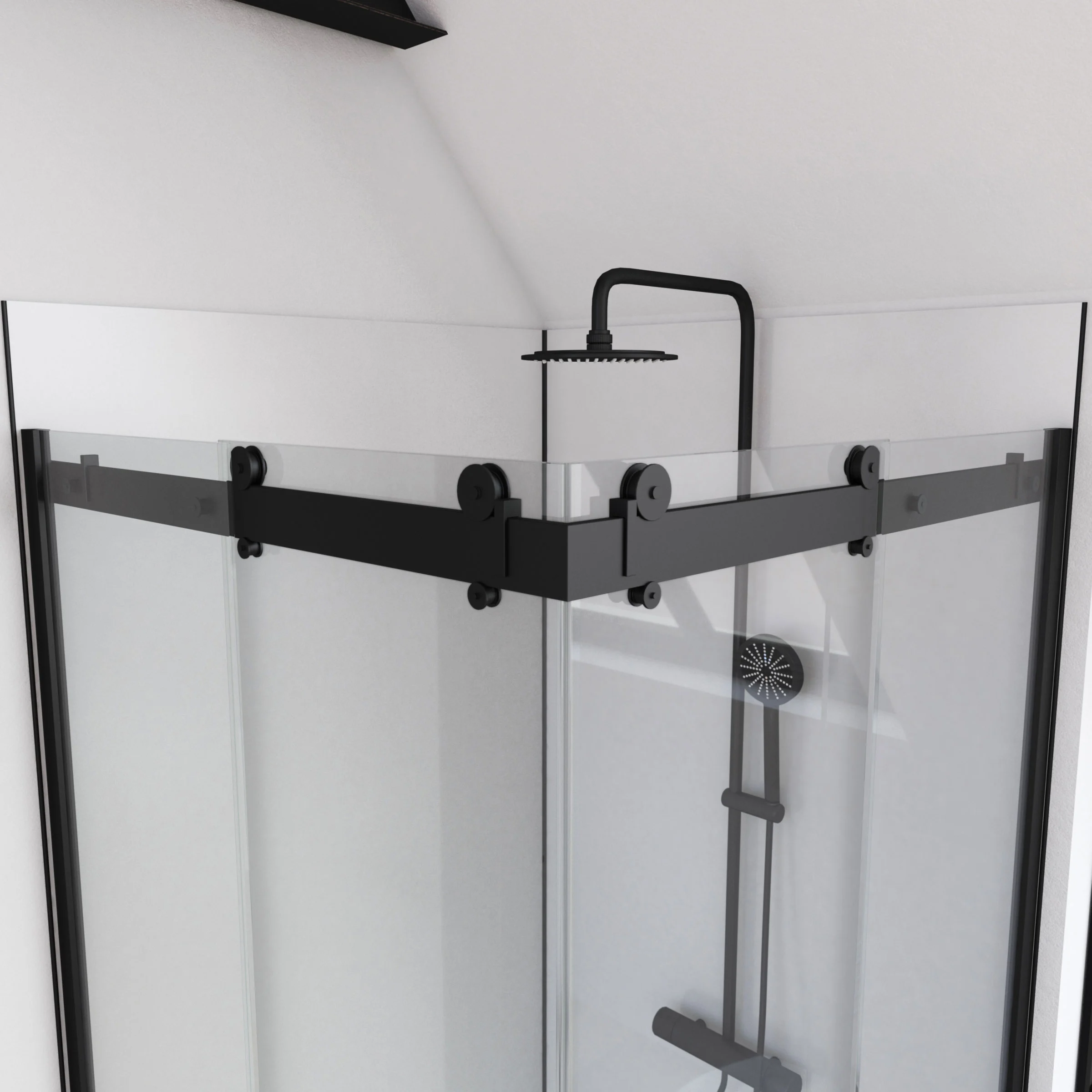 1 avis pour Paroi porte de douche type industriel ouverture d’angle profiles noir mat – verre trempe 8mm