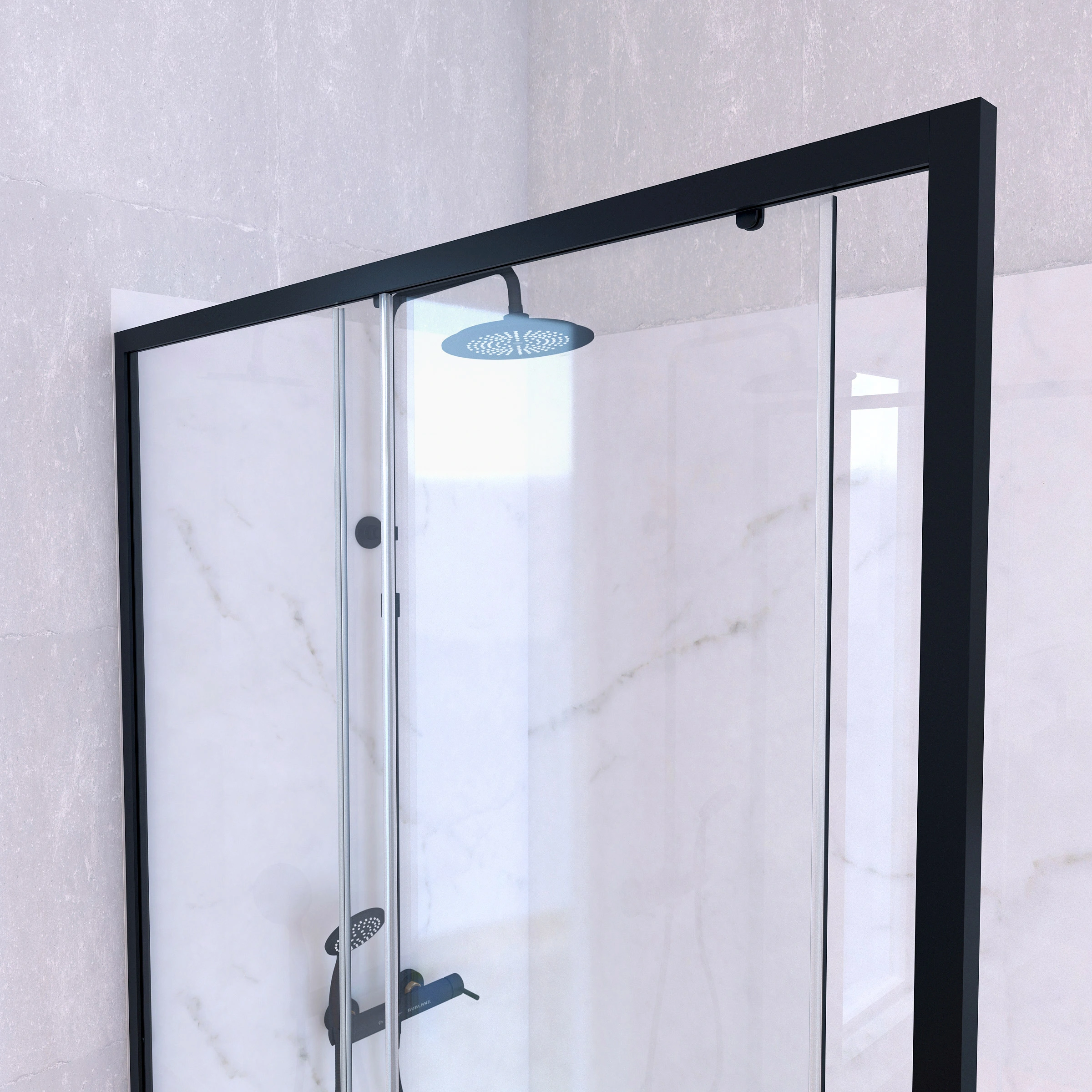 Porte de Douche Coulissante 120×200 cm Profil Noir et Receveur Blanc + Colonne de Douche Mécanique