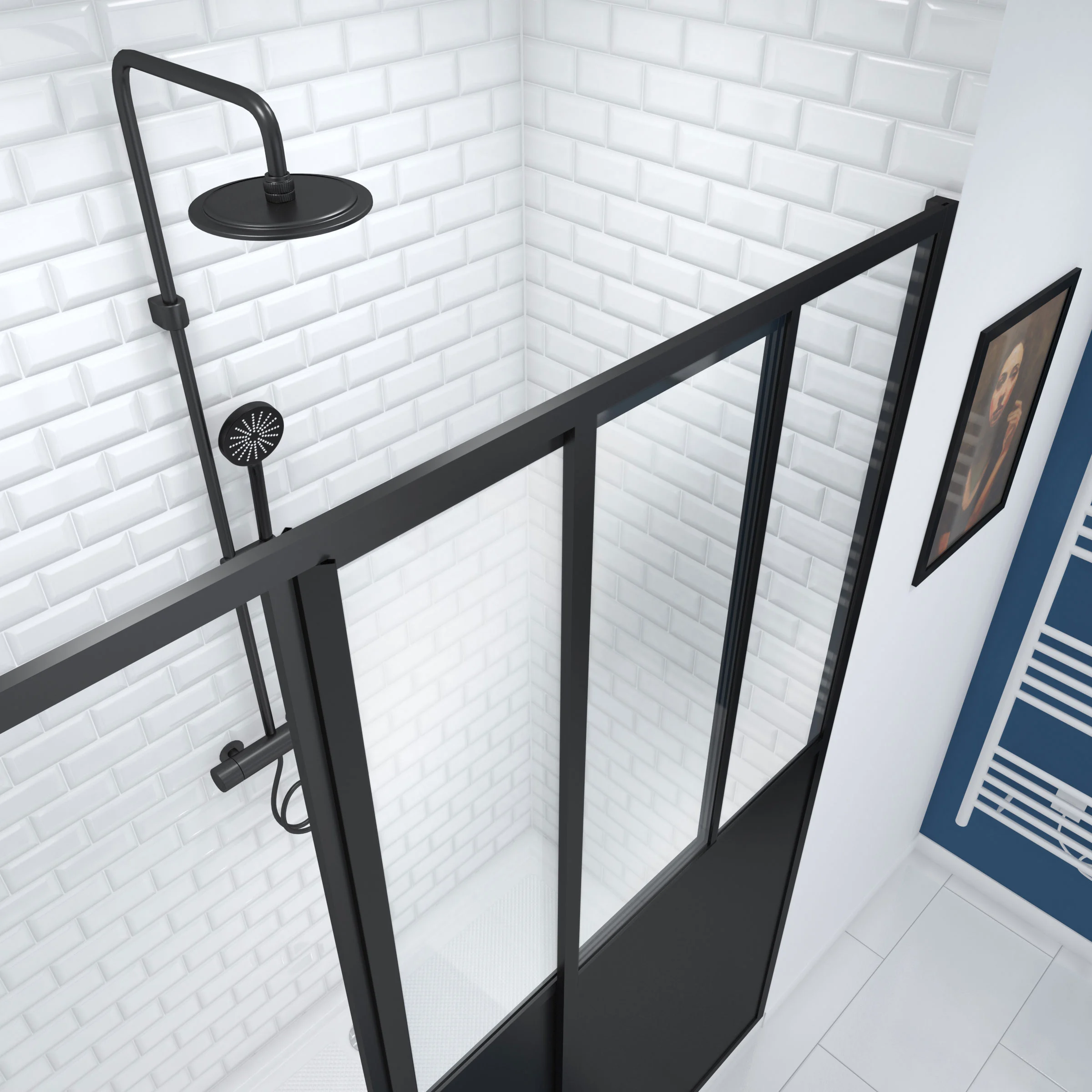 2 avis pour Porte de douche coulissante type Atelier 120x200cm – Profilés Noir Mat – WORKSHOP SLIDE