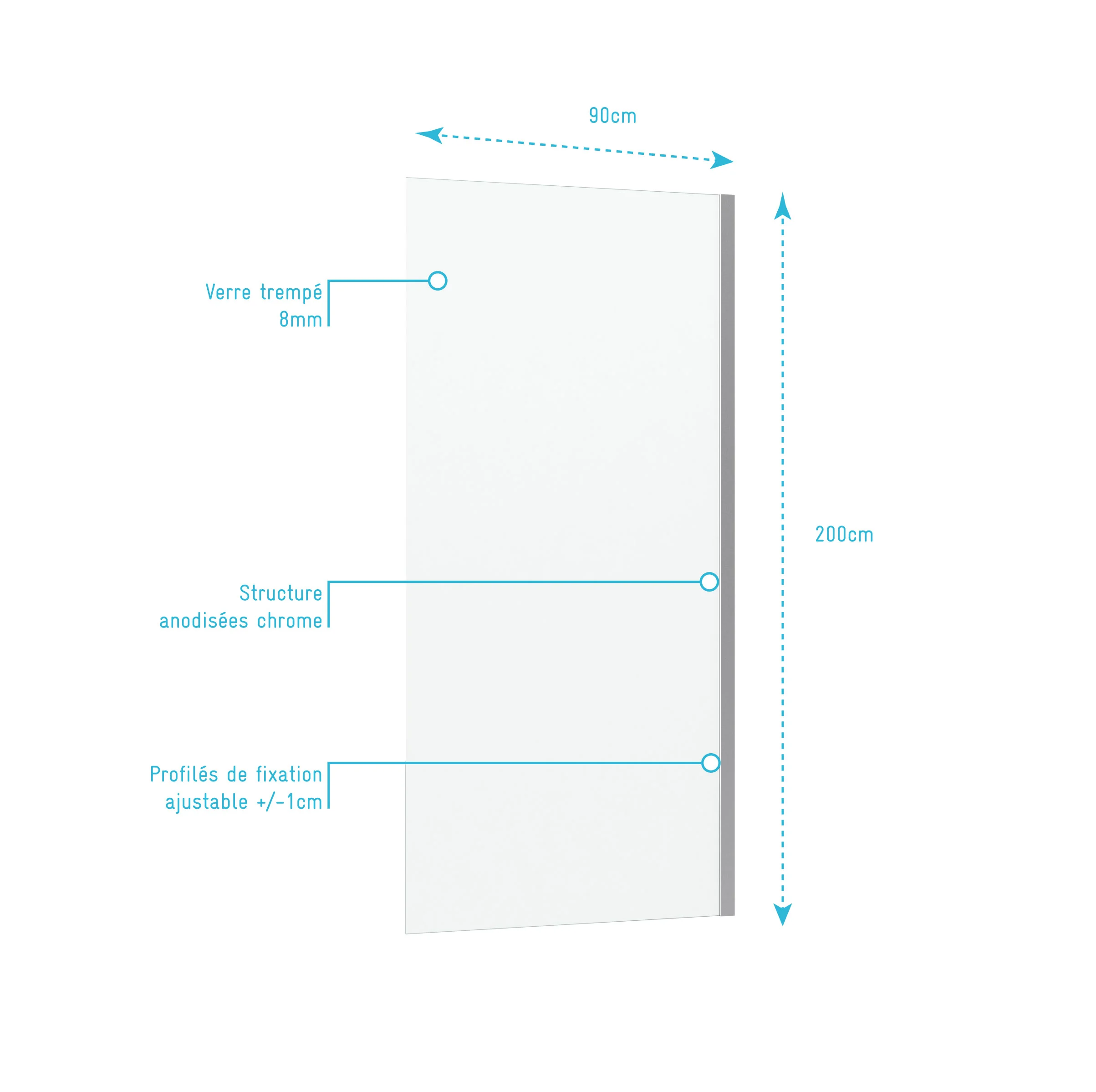 Porte de douche fixe 90x200cm ROLLING CHROMED SIDE 90 / RETOUR 90