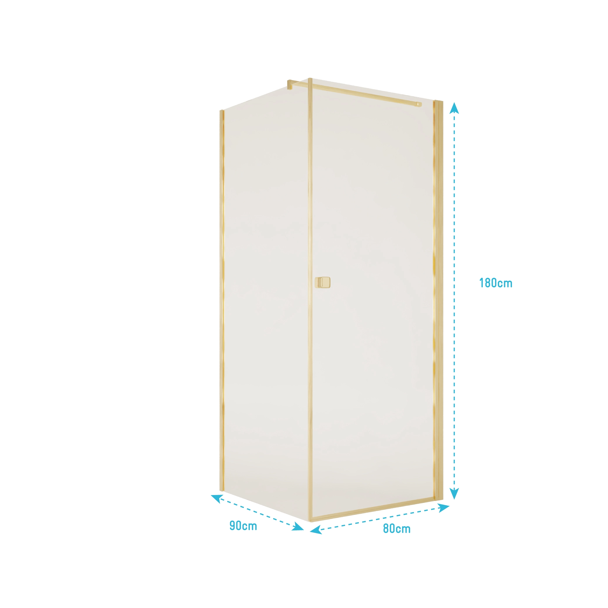 Porte de Douche Pivotante 80x195cm et Retour 90cm – Verre 8mm Anticalcaire – Profil Or Brosse