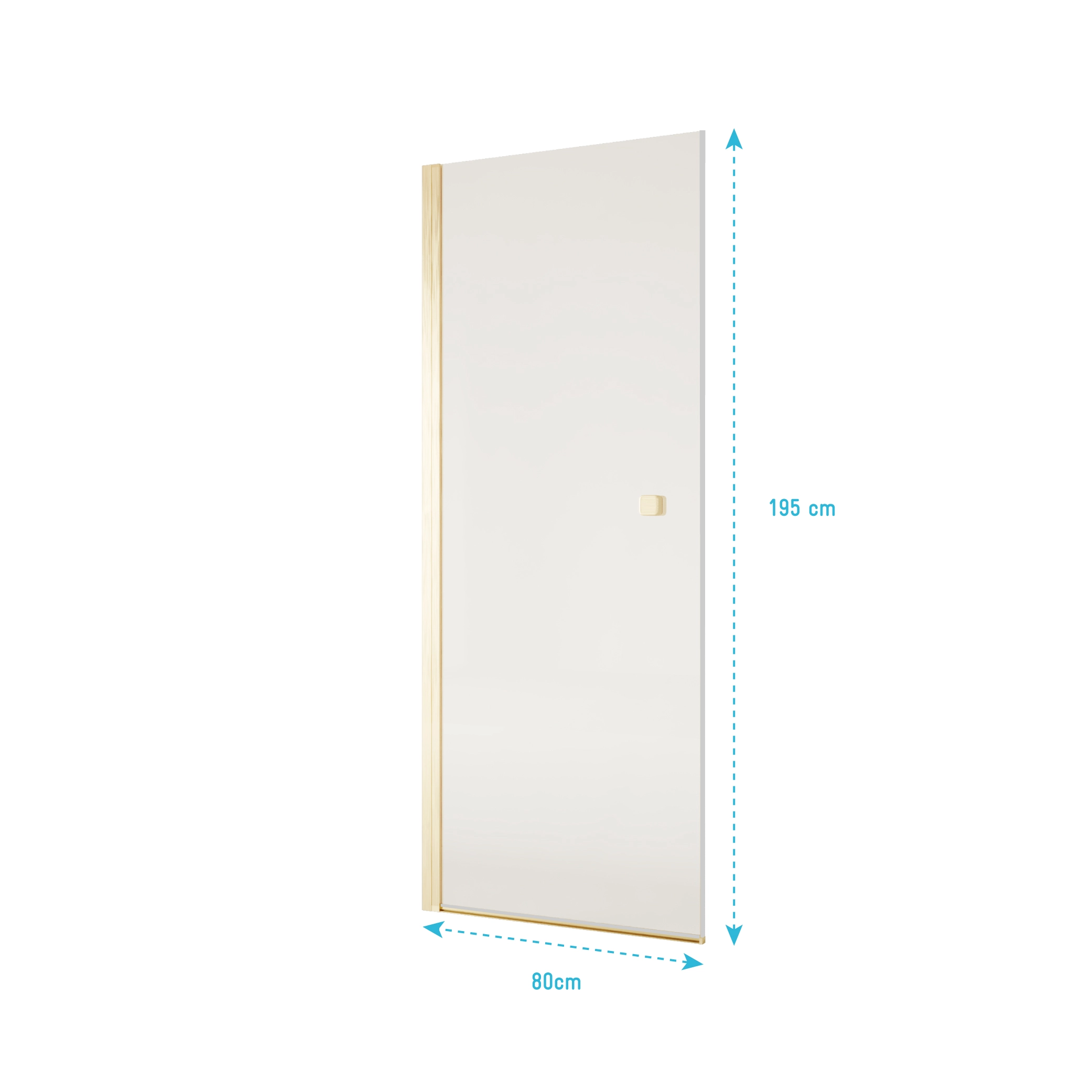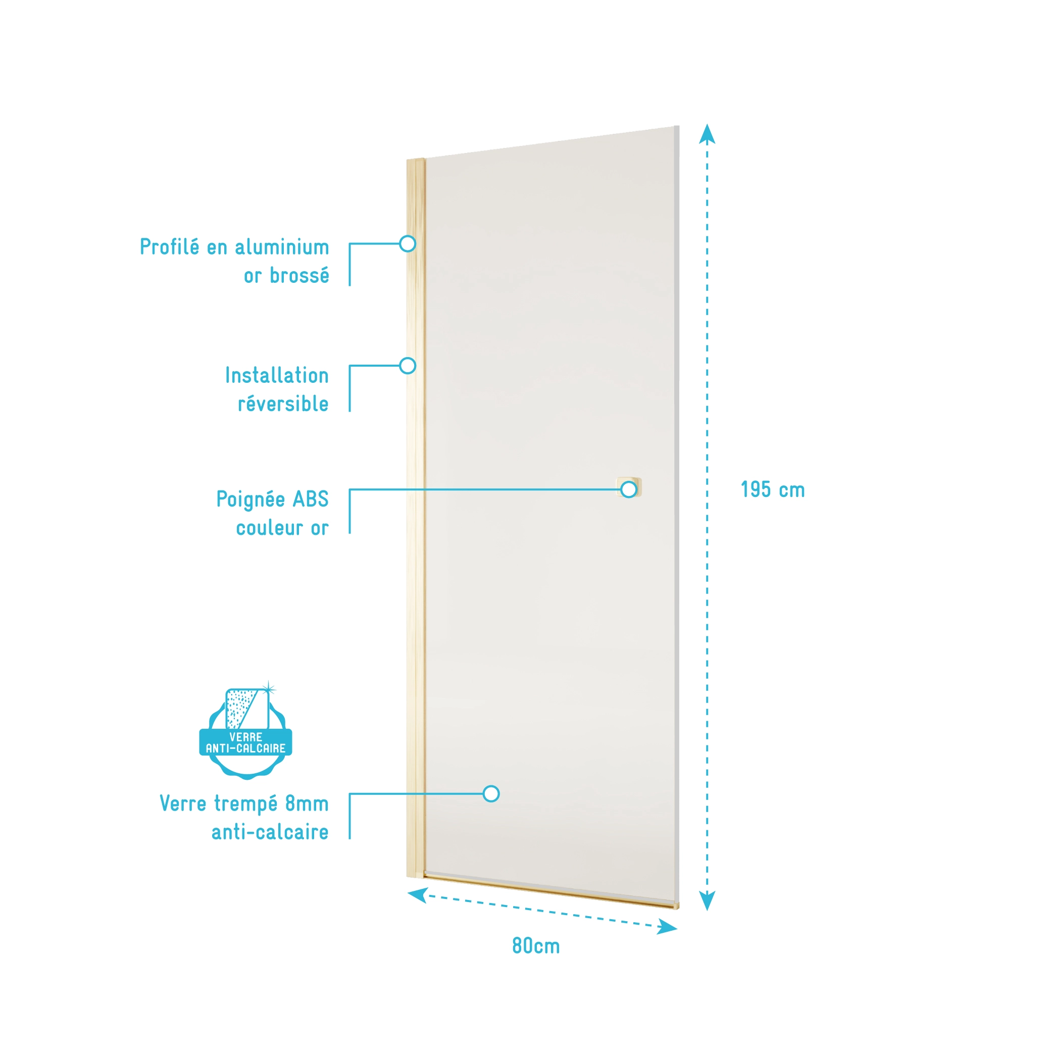 Porte de Douche Pivotante 80x195cm – Verre Trempe 8mm Anticalcaire – Alu Or Brosse – GOLD ELEMENTARY