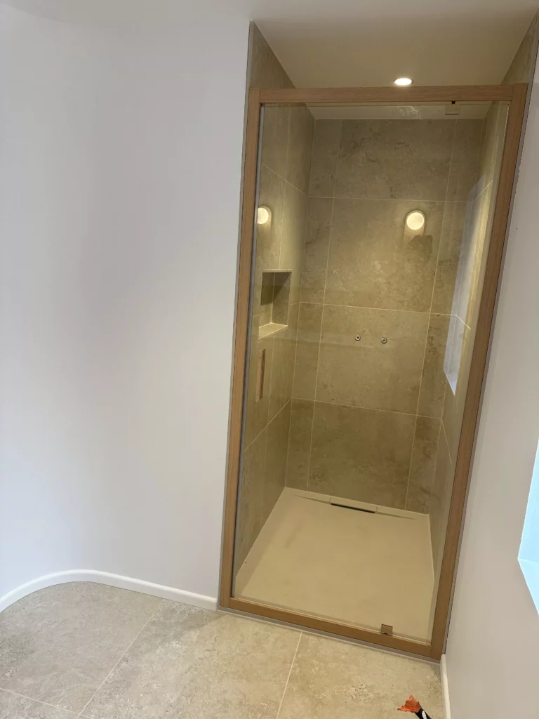 WOOD CRUSH, la porte de douche pivotante avec un encadrement effet bois !