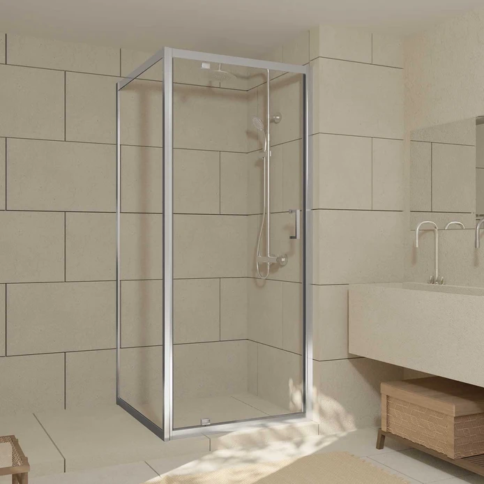 Porte de Douche Pivotante et Retour 90x90x200cm – Profilés Chrome – Verre trempé 6mm
