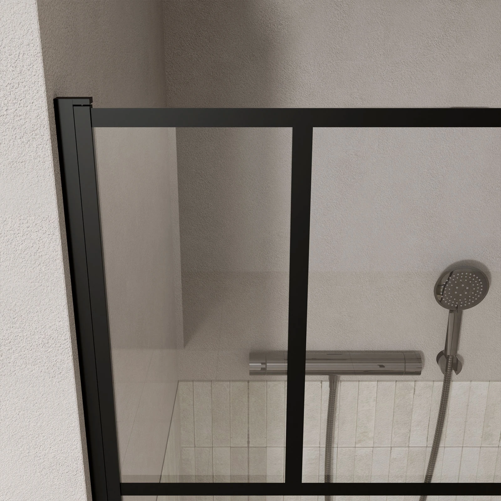 Elle facilite l’accès à la douche tout en apportant plus de lumière et une sensation d’espace. Les profilés noirs ajoutent une touche moderne à la salle de bains.