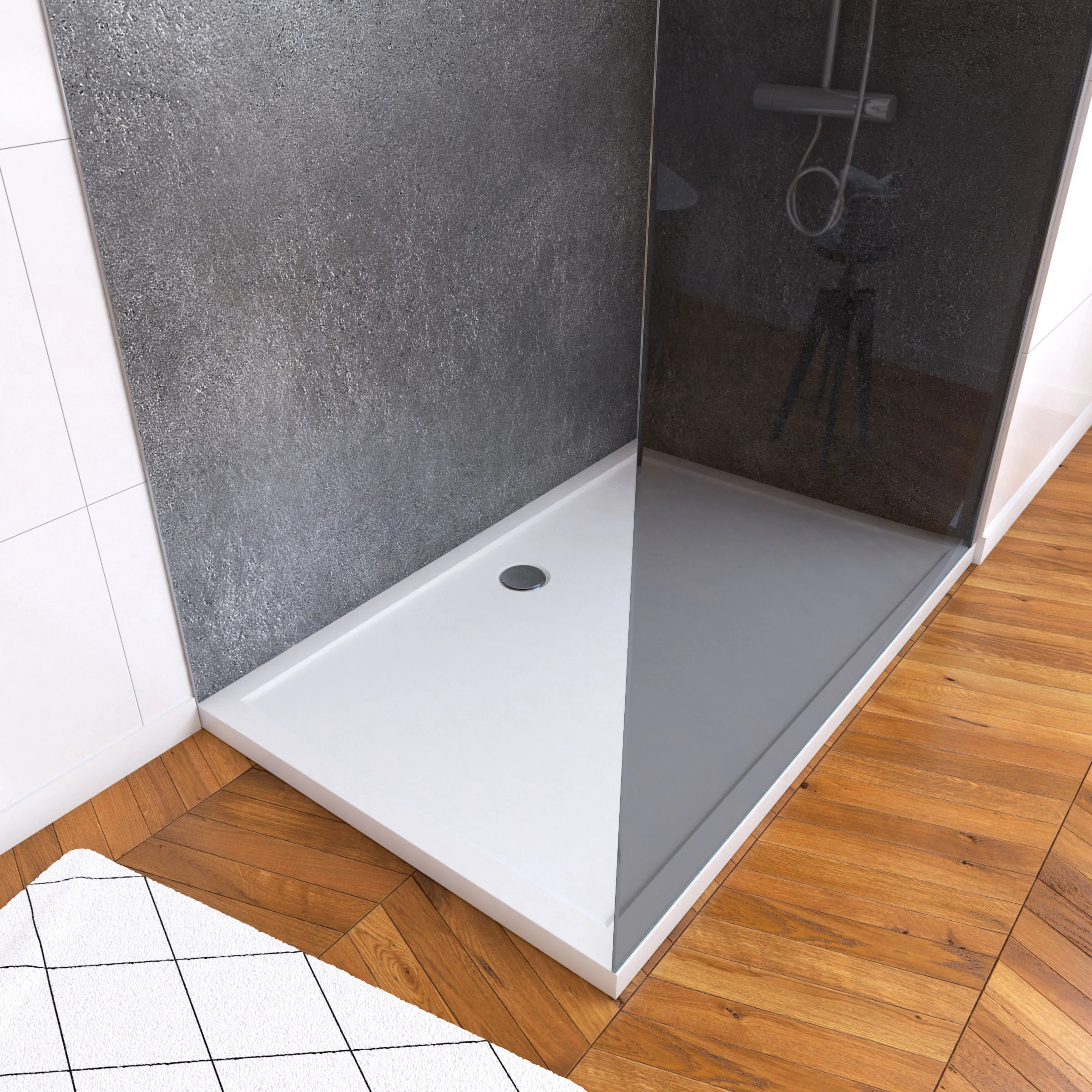 0 avis Ensemble complet douche à l'Italiennne avec Receveur 90x90 + Paroi Miroir + Panneaux muraux Ardoise