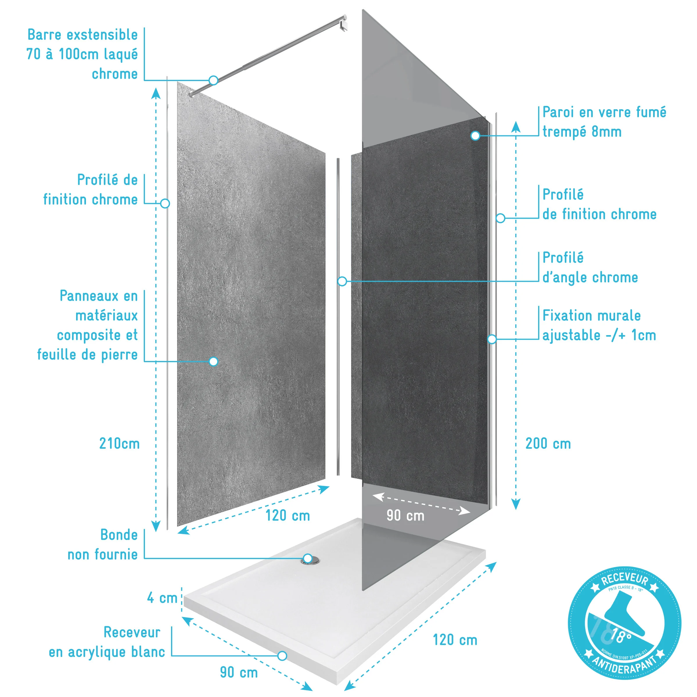 Caractéristiques de la paroi de douche: