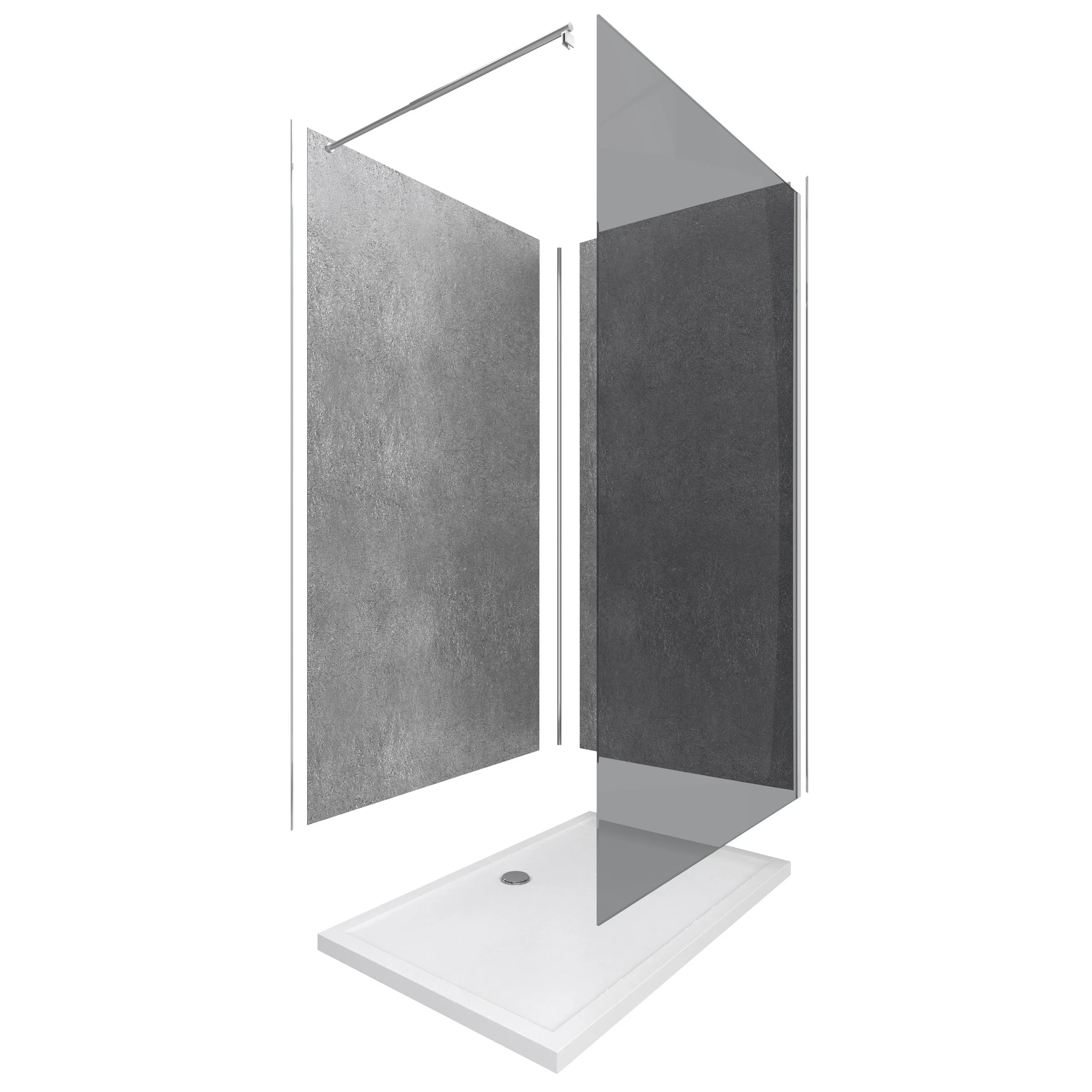 Panneaux Muraux Silver Grey 90+120×210 – Receveur 120×90 – Paroi 8mm Fumée 120×200 + Bras