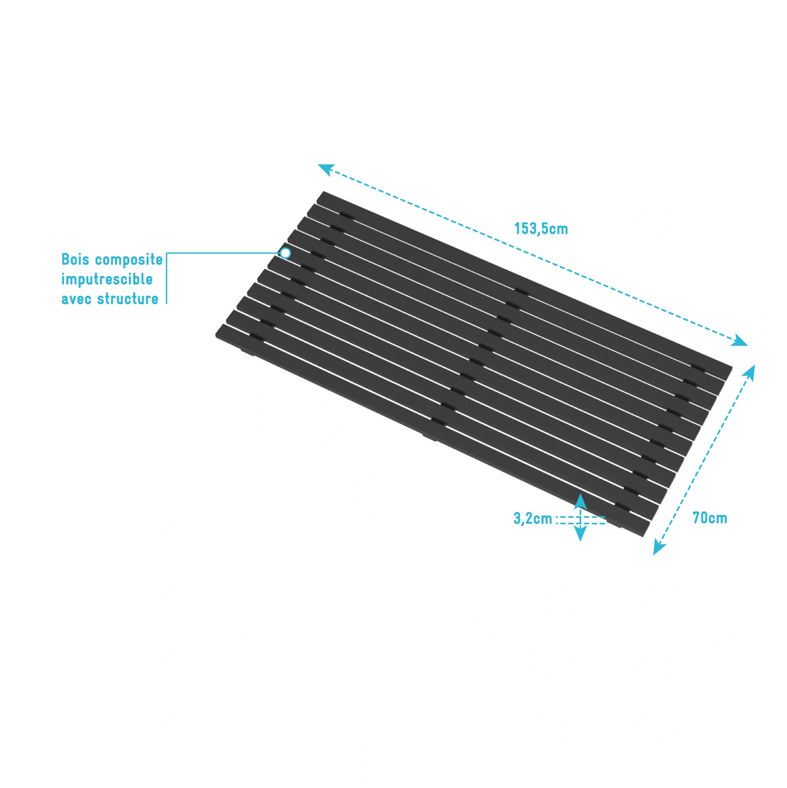 0 avis CAILLEBOTIS Caillebotis en Bois Composite Gris pour Cabine rectangulaire - Dimensions 153.5 x 70 x 3.2 cm