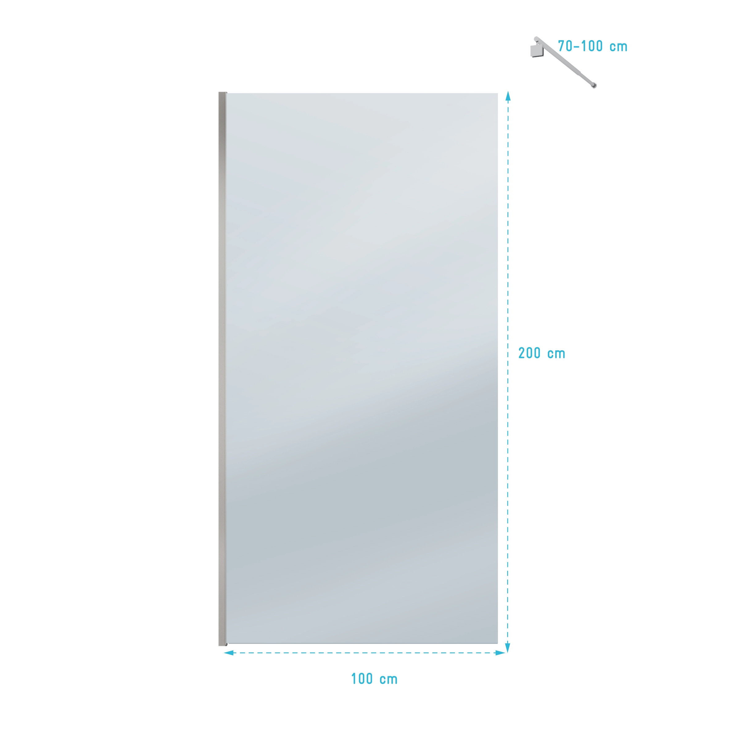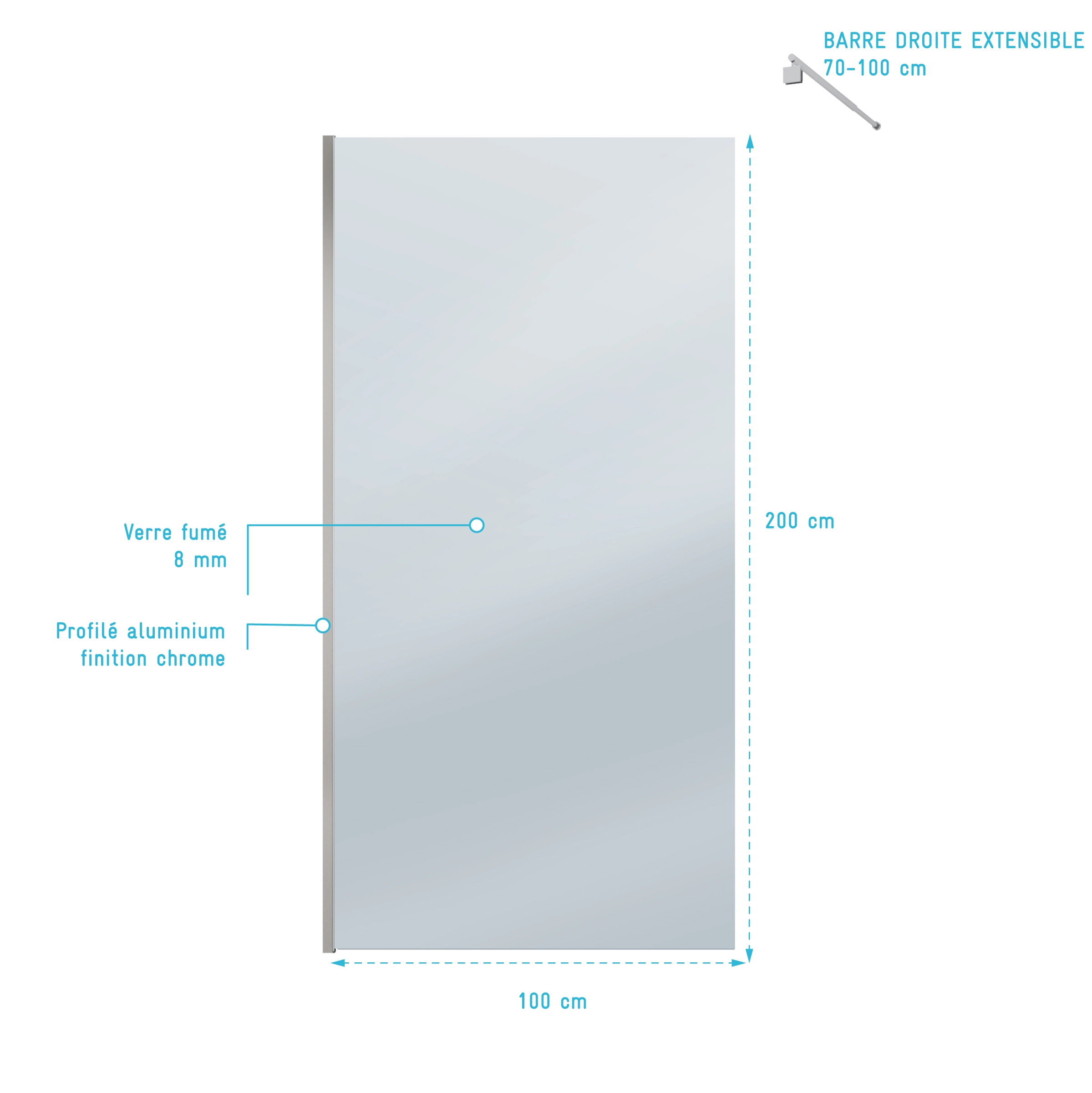 Paroi de Douche 100x200cm Verre Fumé 8mm – Barre de Fixation Extensible et Profil Chrome