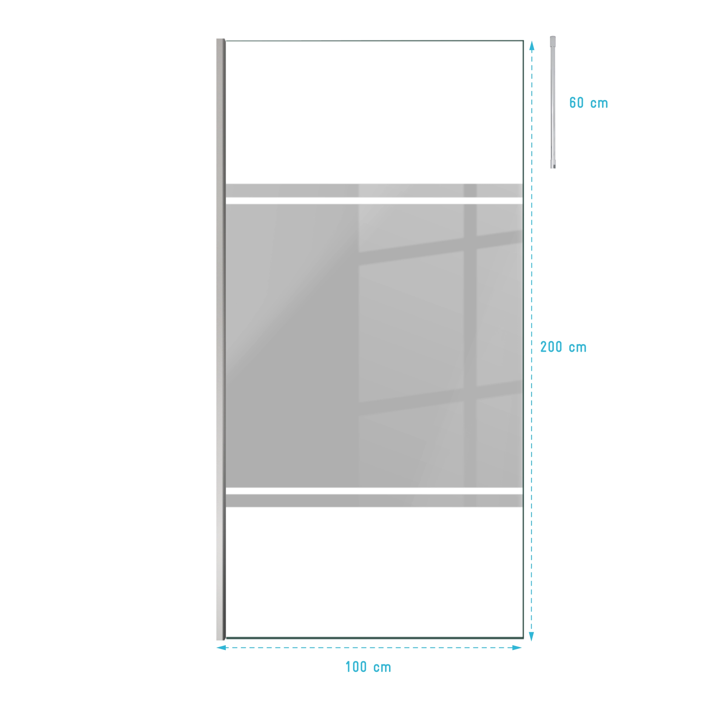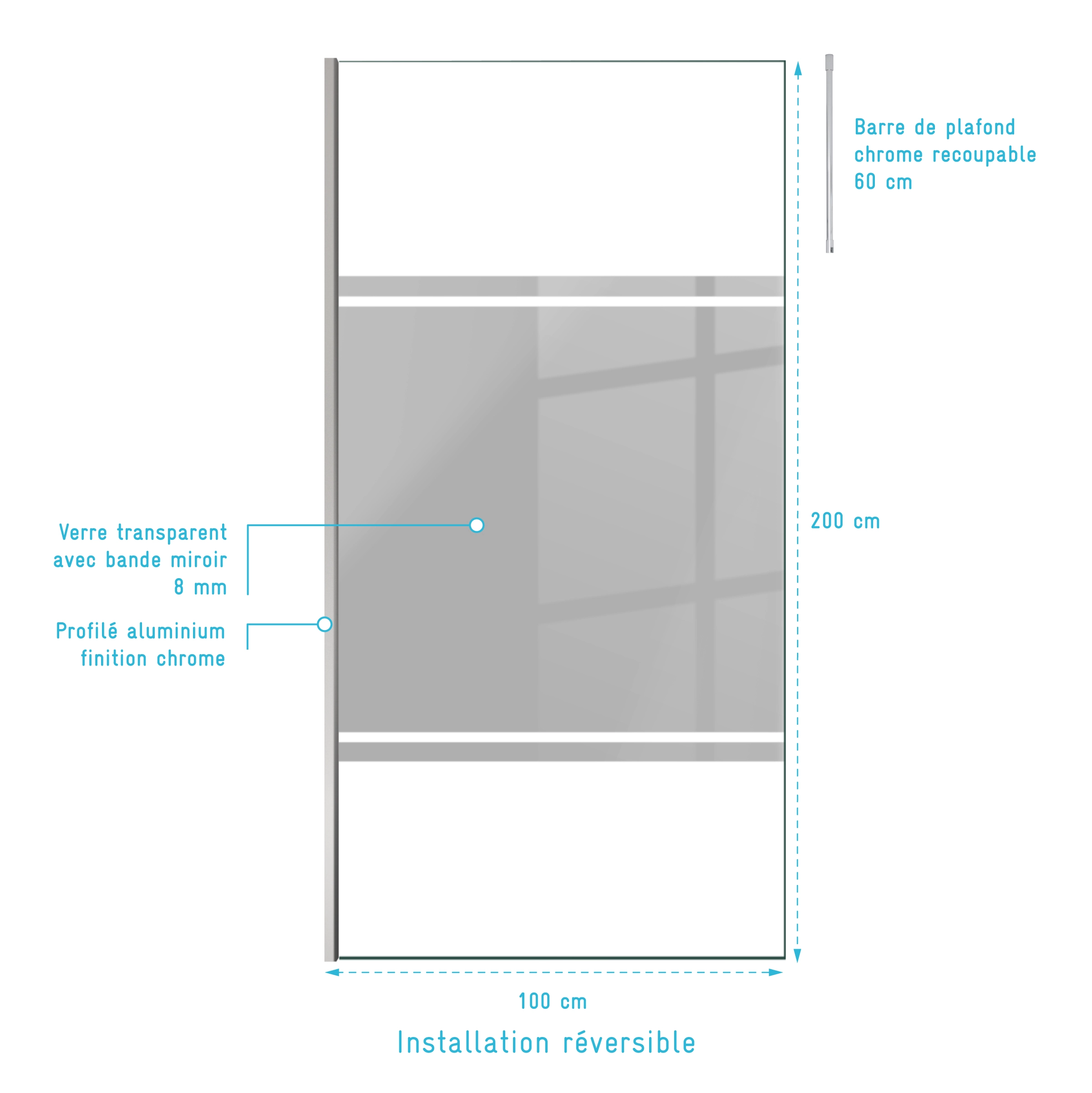 Paroi de Douche 100x200cm Miroir – Profilé + Barre Plafond Finition Chrome – FREEDOM 2 MIRROR