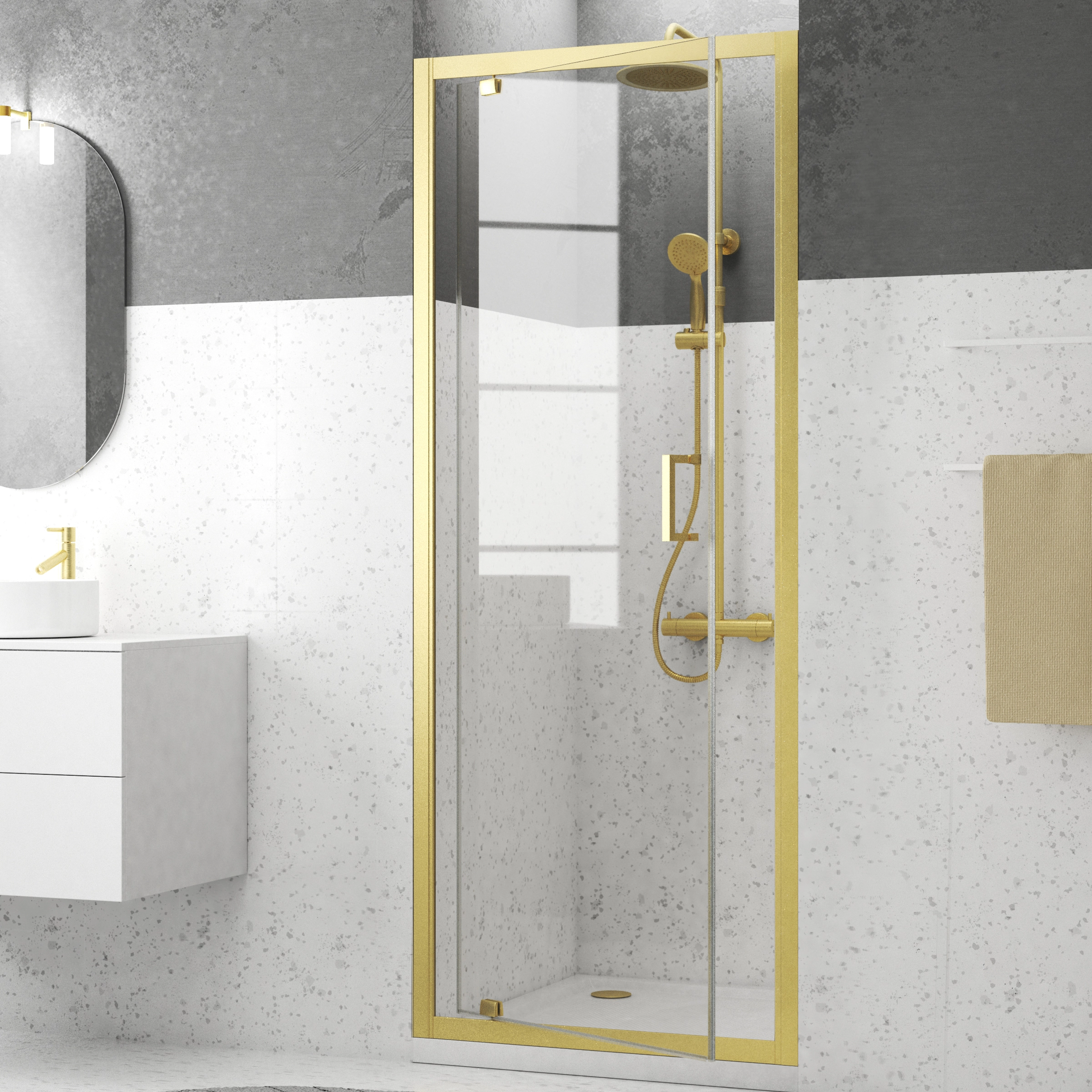 2 avis pour Porte de douche Pivotante 80x200cm – Profilés Or Doré Brossé – Verre Trempé 6mm – GOLDY CRUSH