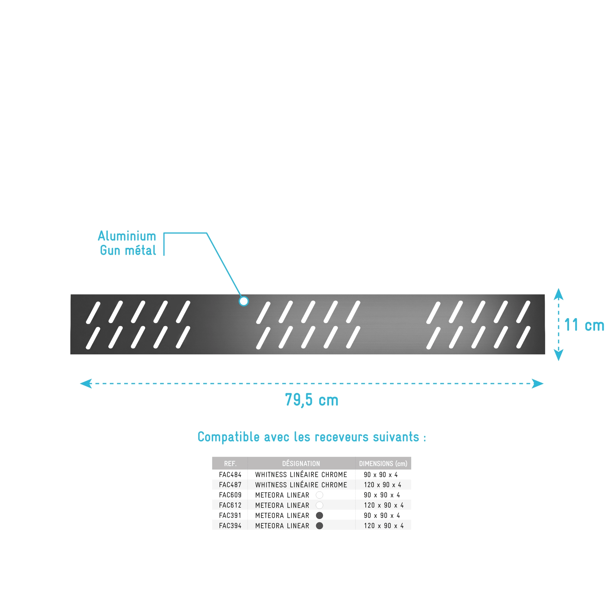 Grille linéaire en Aluminium finition Gun Metal pour receveur – 79.5x11x0.2cm – GRID LINE GUN METAL