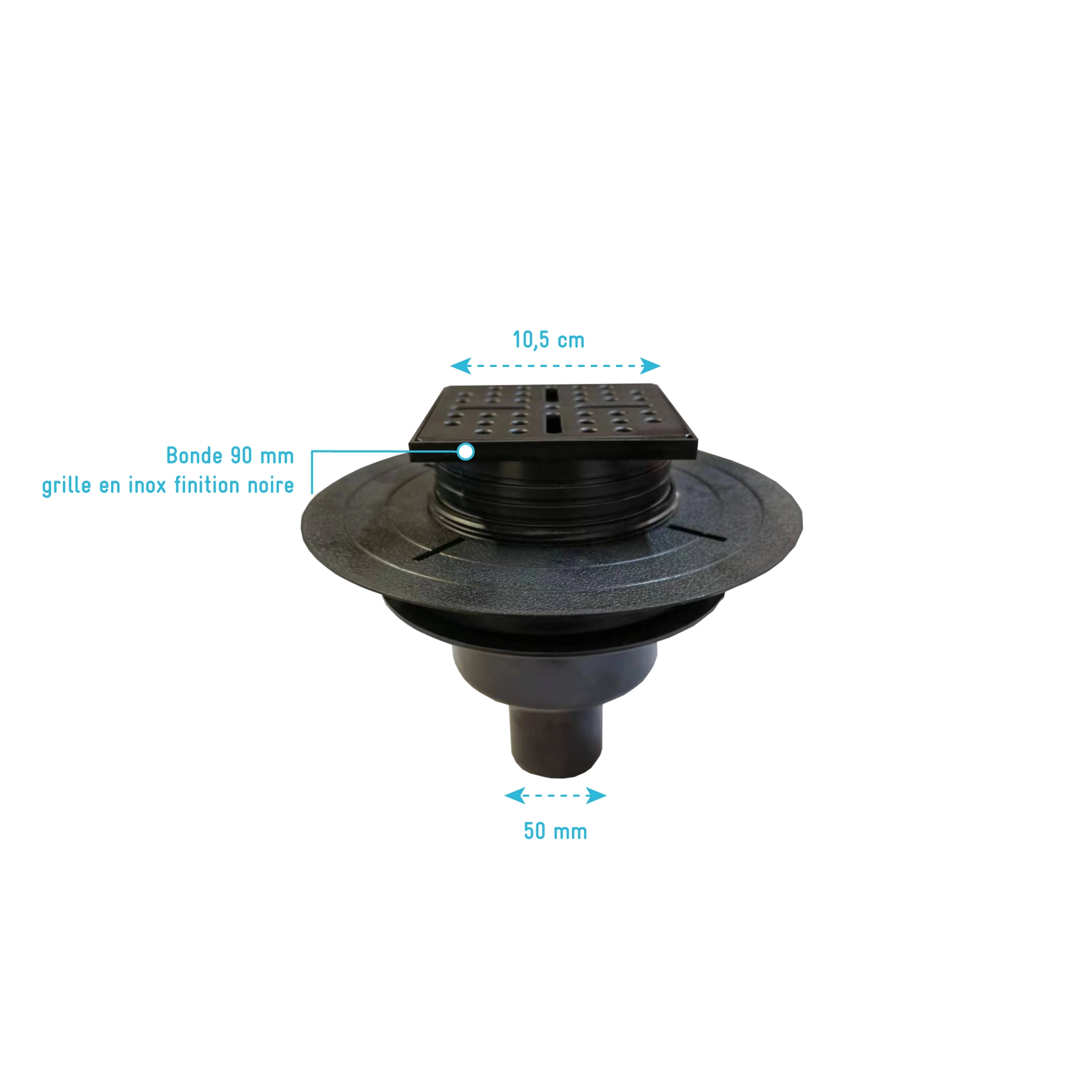 Bonde à sortie VERTICALE pour receveur à carreler RAINY et HIGH RAINY – Grille Inox Noir