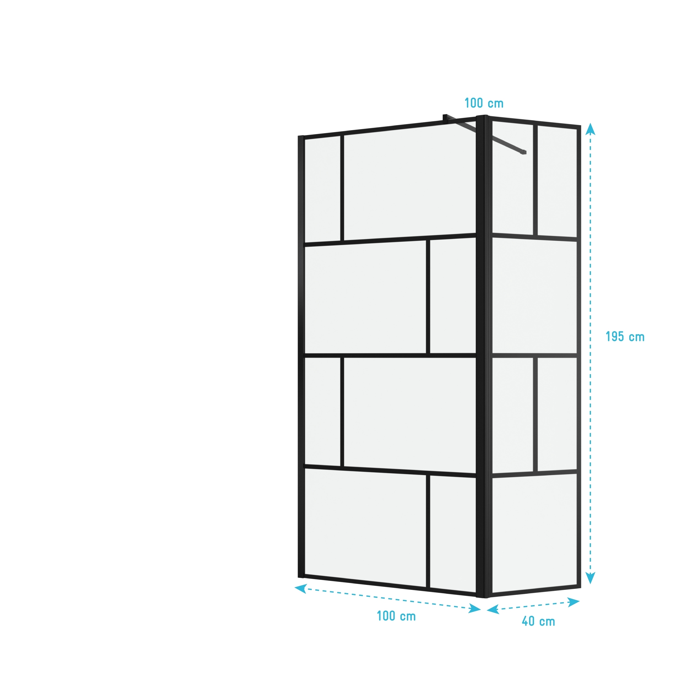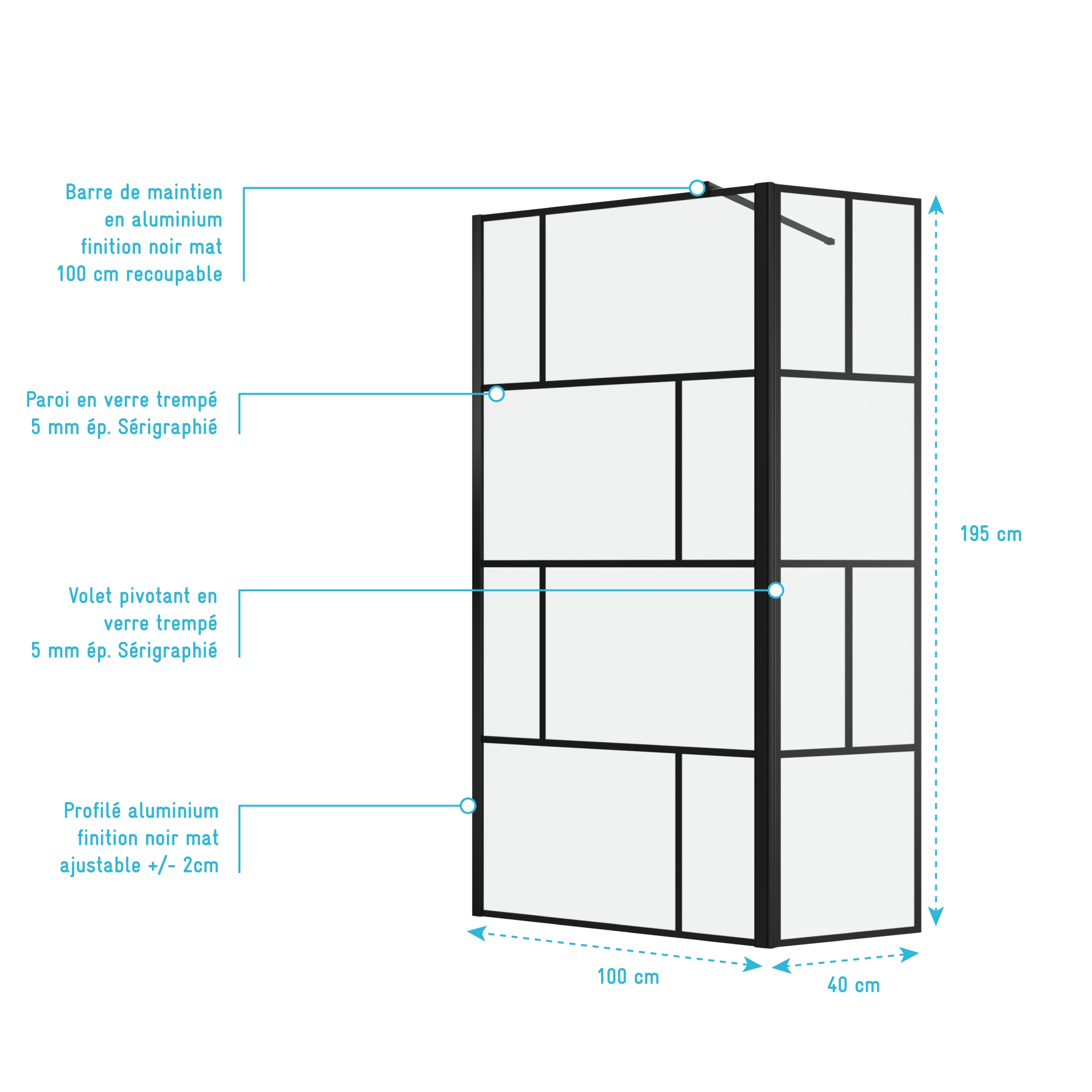 1 avis DARK BLOCKS Paroi de Douche avec Volet Pivotant 100+40x195cm - Verre 8mm Anticalcaire - Motifs et Profilés Noir