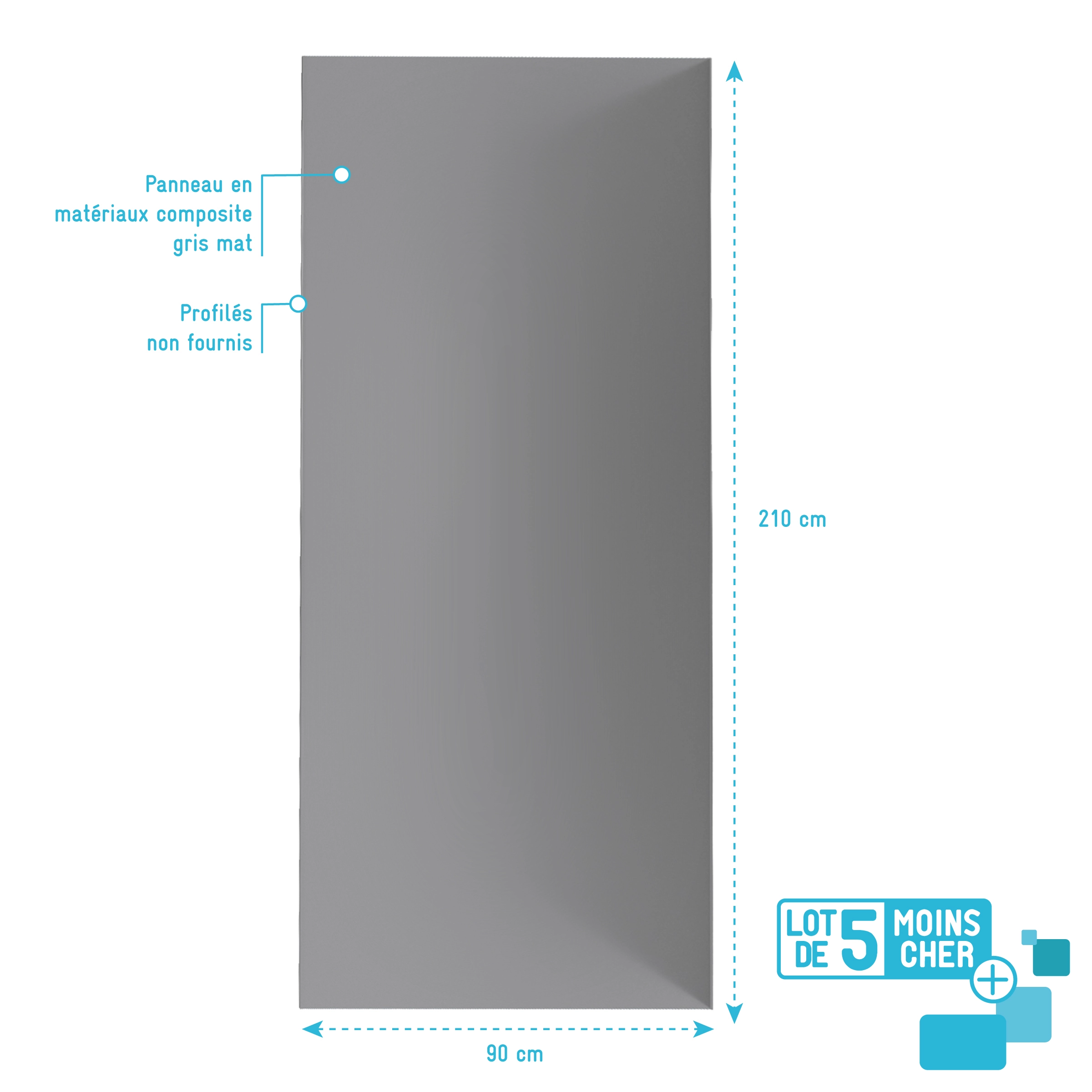 LOT de 5 Panneaux Muraux pour salle de bains en Aluminium Gris – 90x210cm – WALL’IT
