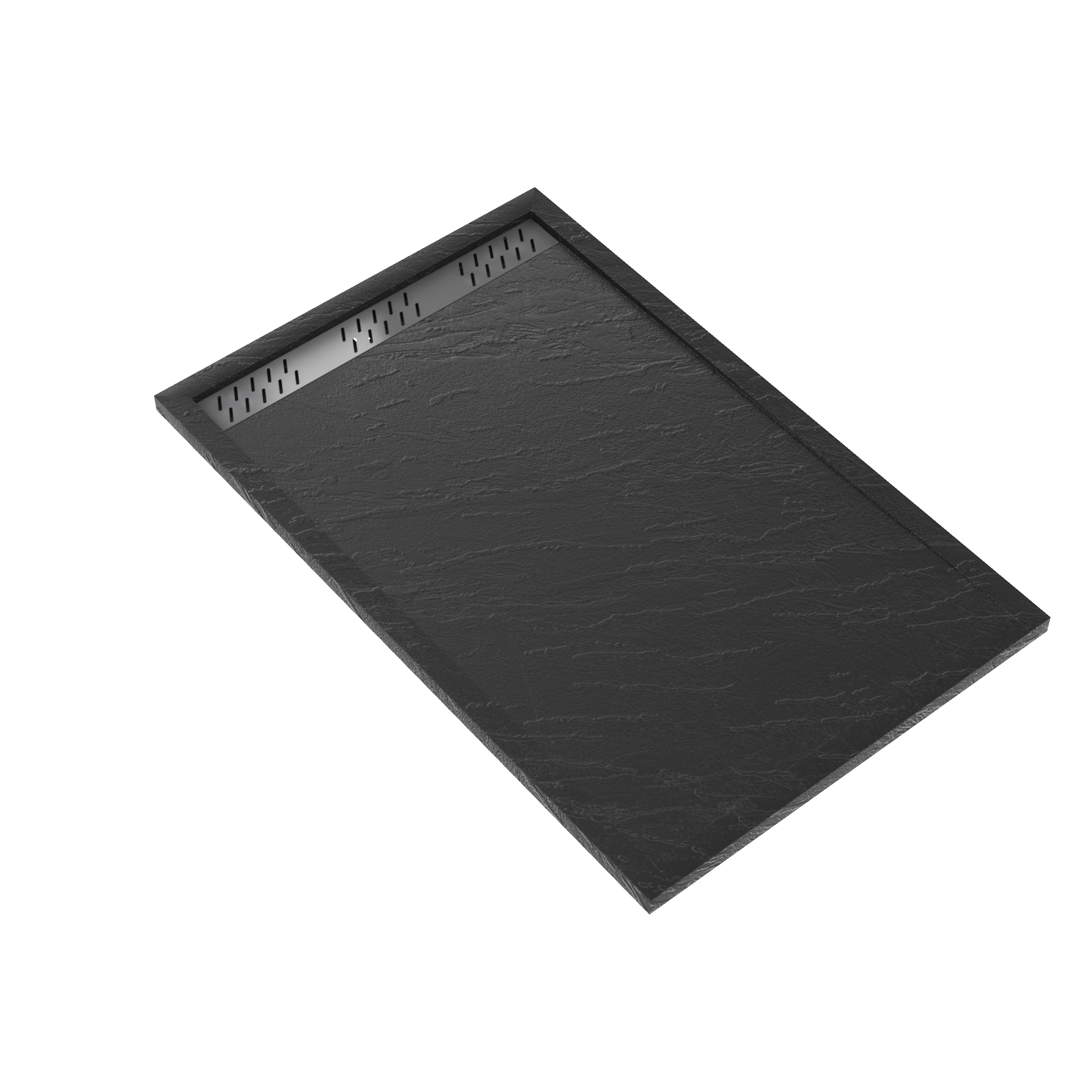 0 avis METEORA Receveur en acrylique Noir Effet Pierre 90x140x5 cm + Grilles Linéaires Chrome et Noire Mate