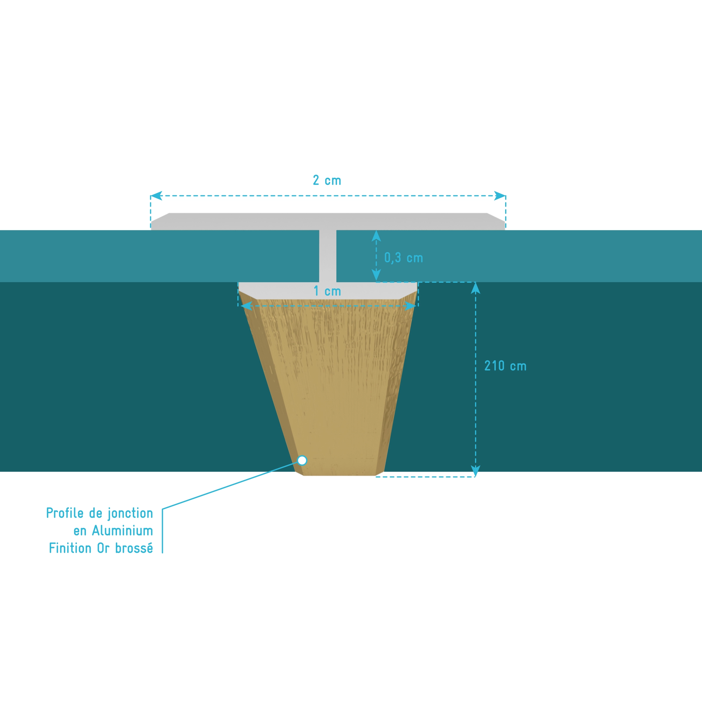 • Profilé de jonction en Aluminium Finition Or Brossé pour Panneaux Muraux - 20x5x2100 mm