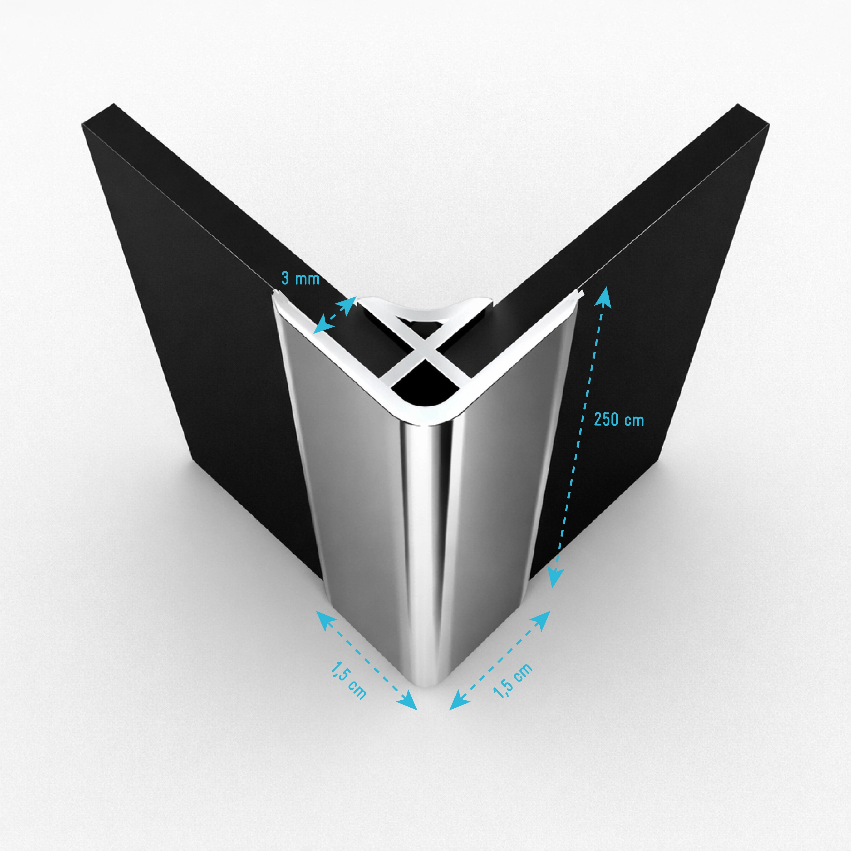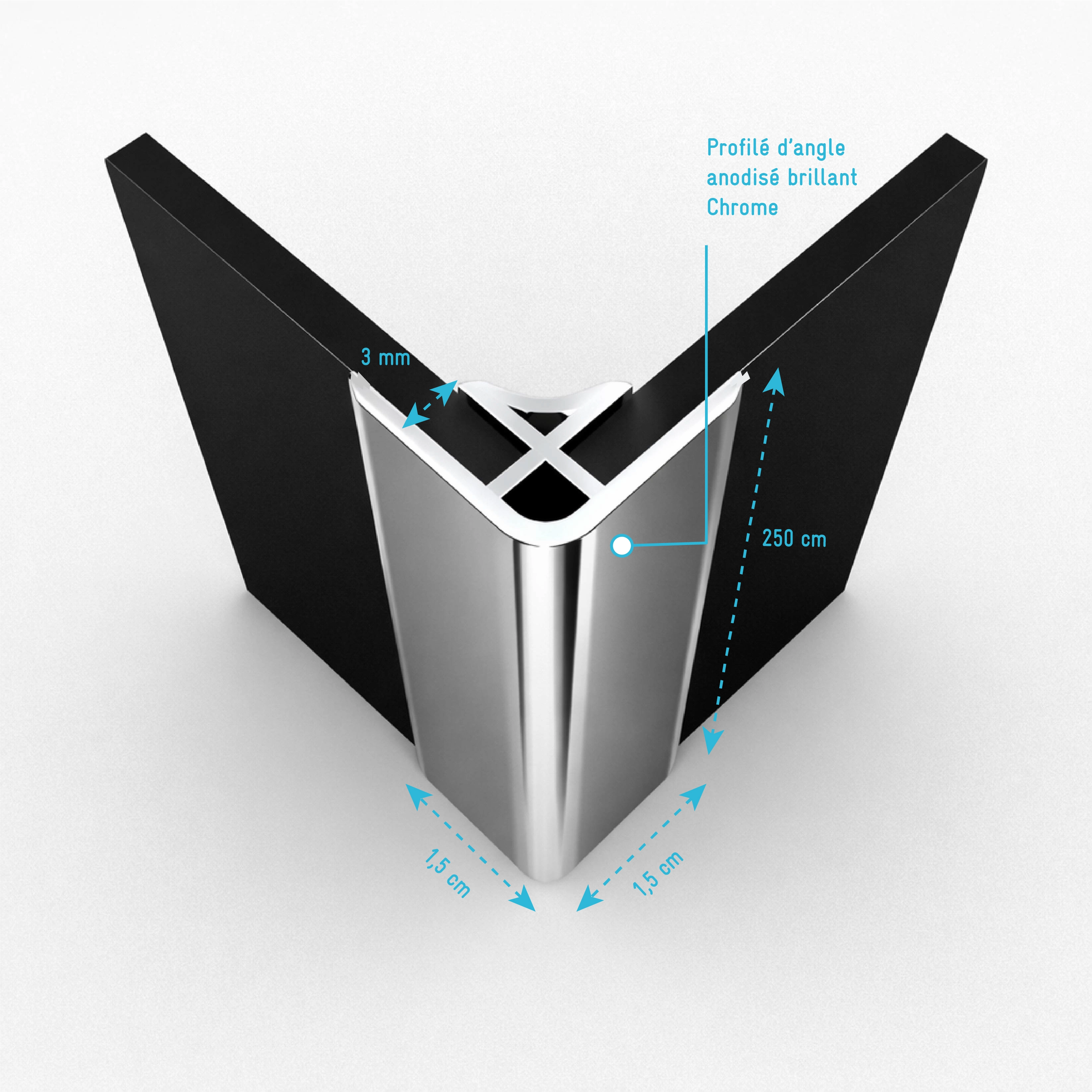 • Profilé Mural d'Angle en Aluminium Chrome H250 cm compatible avec WALL'IT et STONE'IT