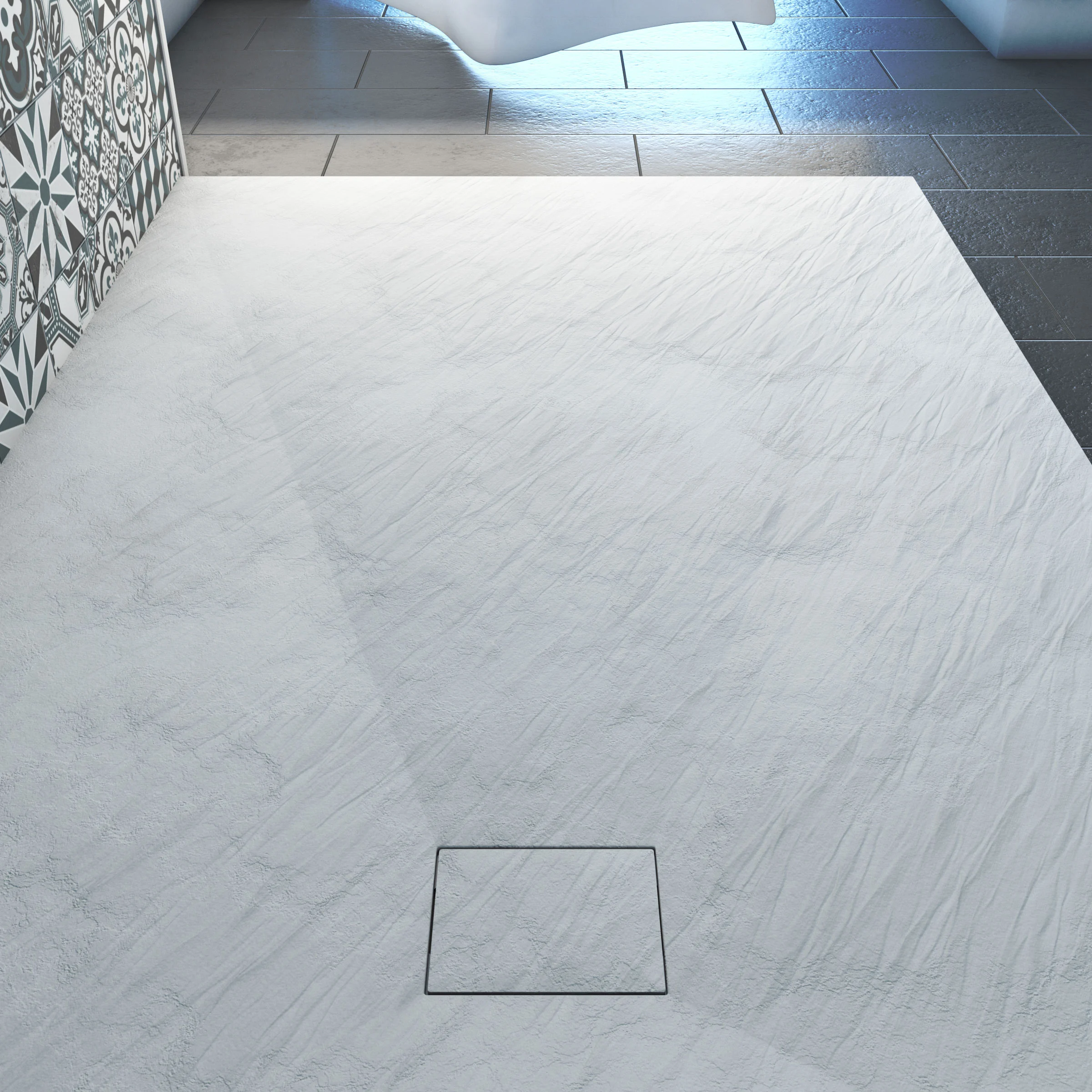 Receveur de douche en résine blanc 90x140x3 cm effet pierre granit + grille linéaire blanche mate
