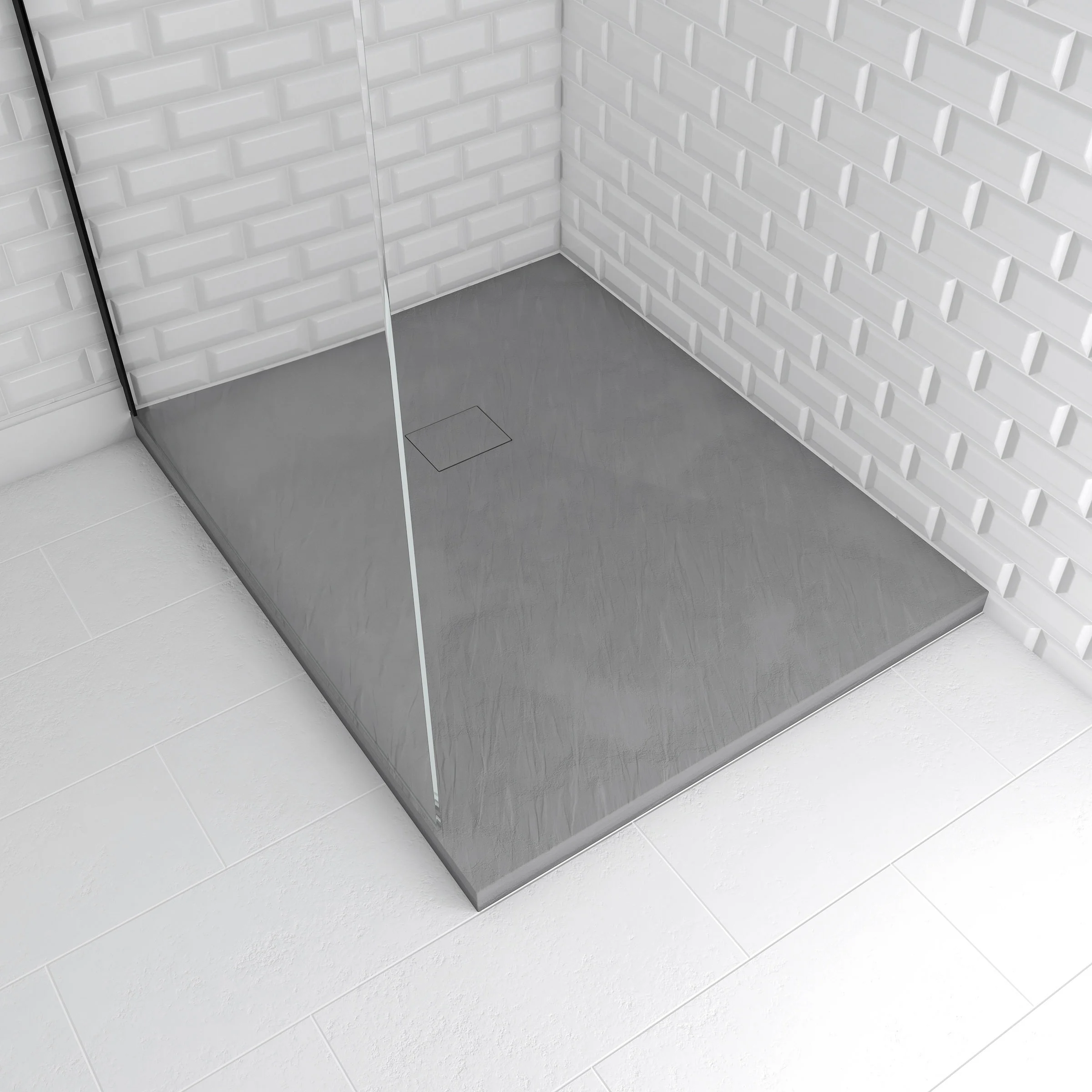 Receveur en acrylique Blanc Effet Pierre 100x80x4cm + Grilles Linéaires Chrome et Gun Metal