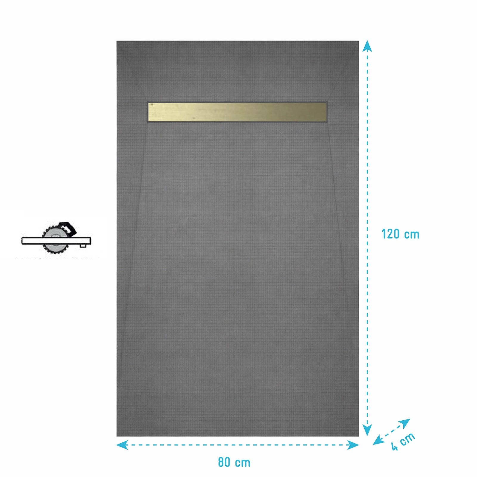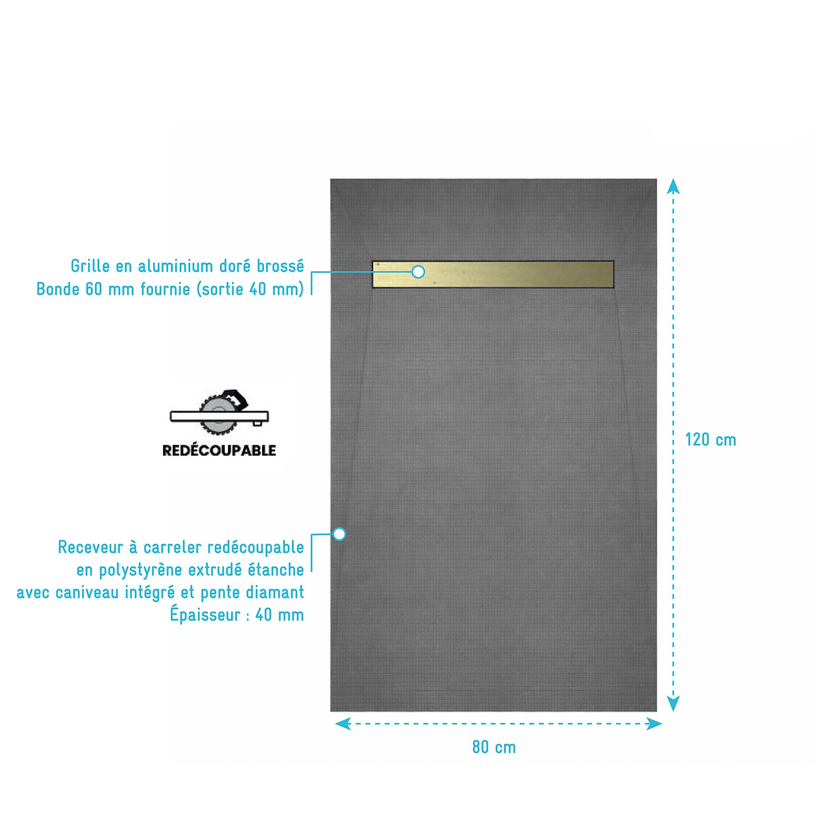 Receveur de douche à carreler 120×90 cm avec bonde écoulement linéaire – Grille finition or brossé