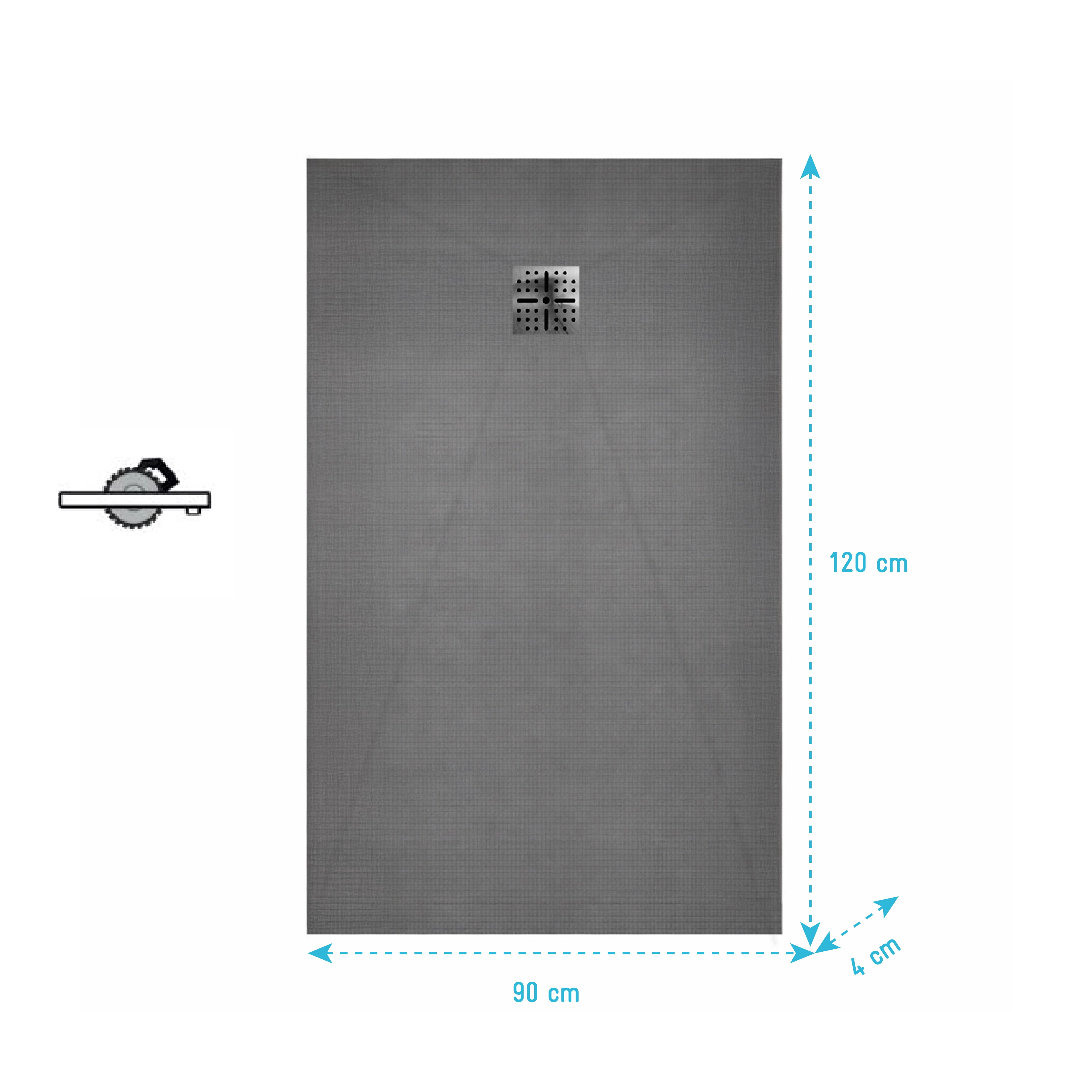 Receveur de douche à carreler 120×90 cm avec bonde à sortie Horizontale – Grille finition chrome