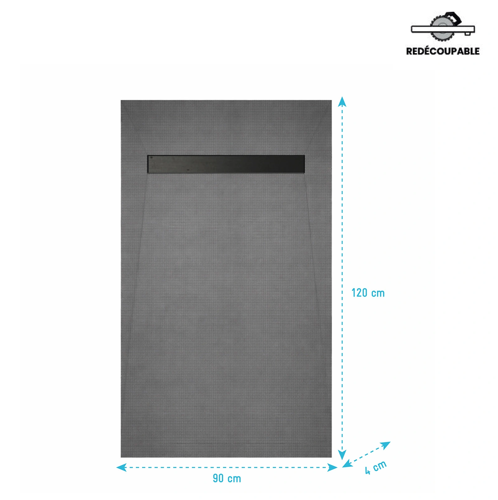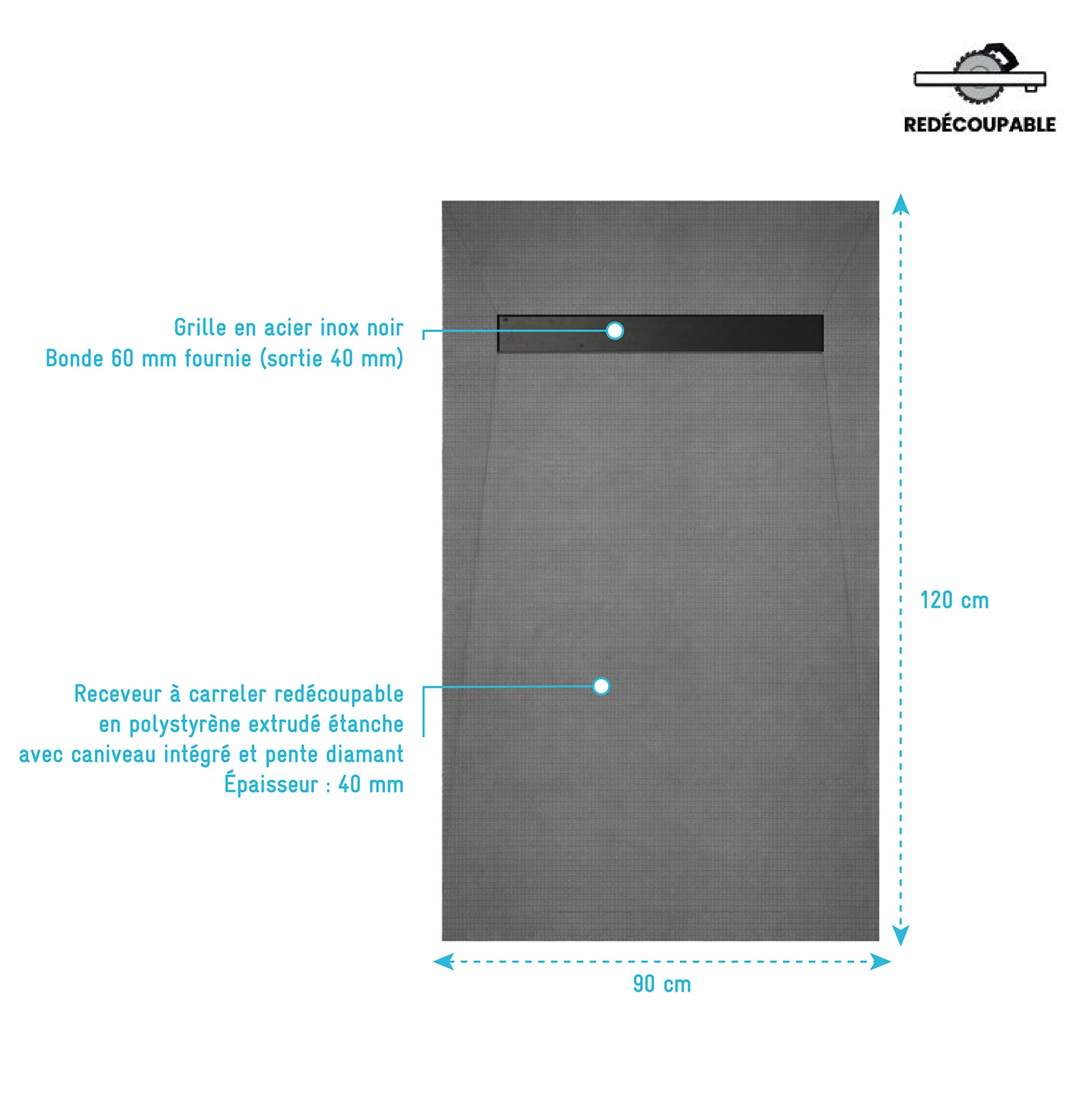Receveur de douche à carreler 120×90 cm avec bonde écoulement linéaire – Grille finition noire