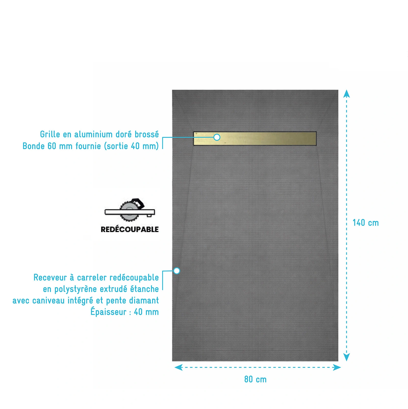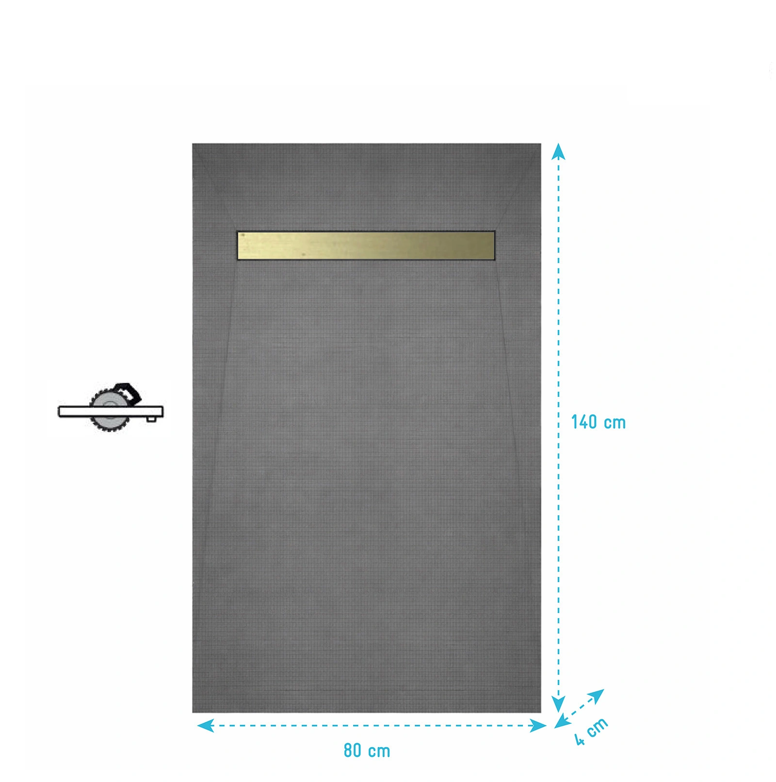 Receveur de douche à carreler 140×80 cm avec bonde écoulement linéaire – Grille finition or brossé