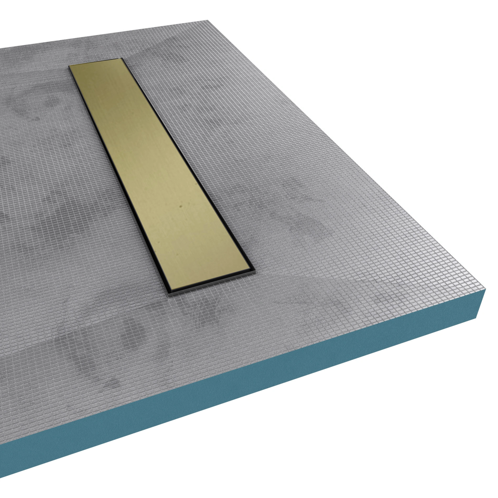 Receveur de douche à carreler 160×80 cm avec bonde écoulement linéaire – Grille finition or brossé