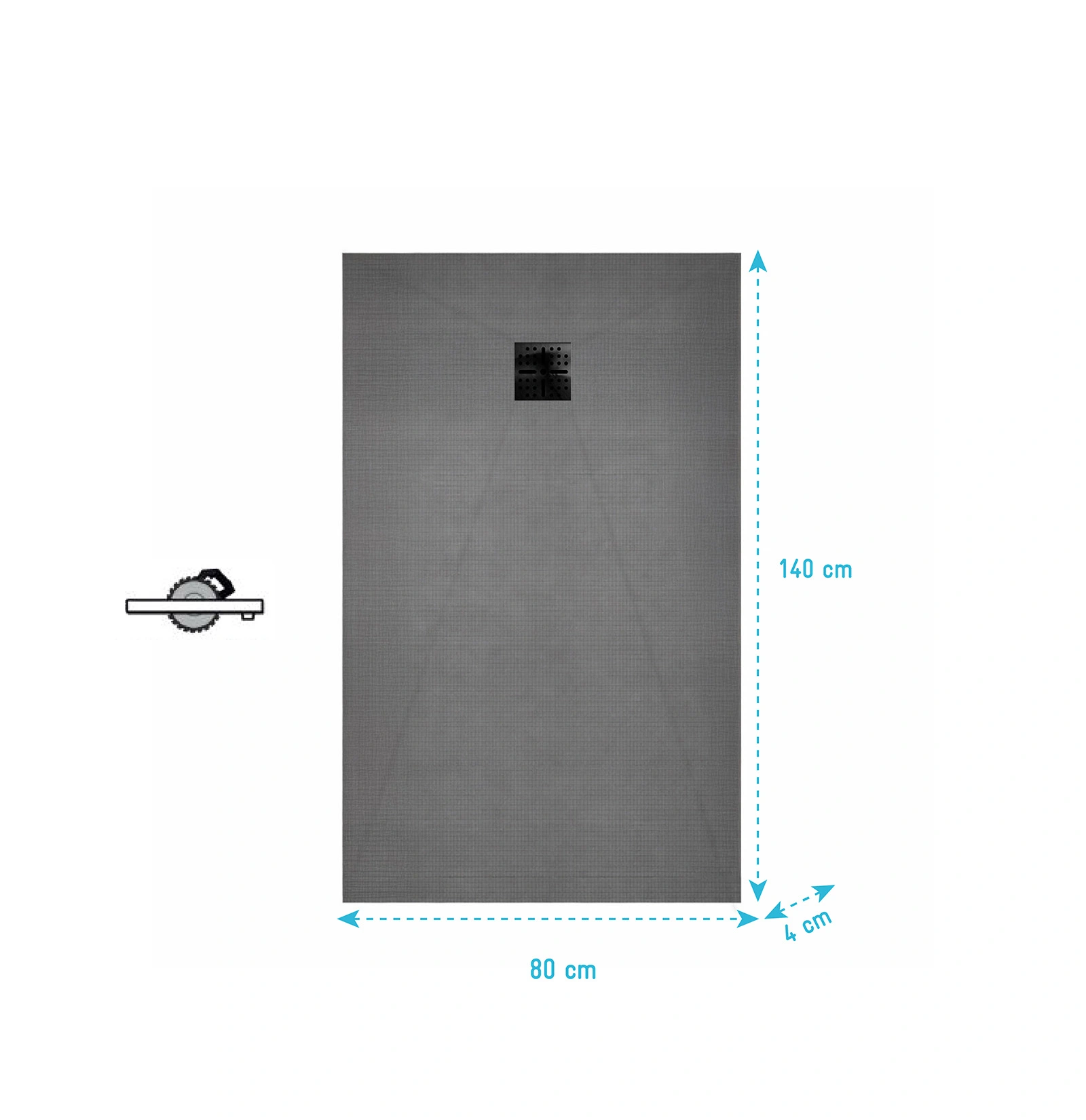 Receveur de Douche à Carreler 140×80cm à Ecoulement Linéaire - Grille Noire et Bonde