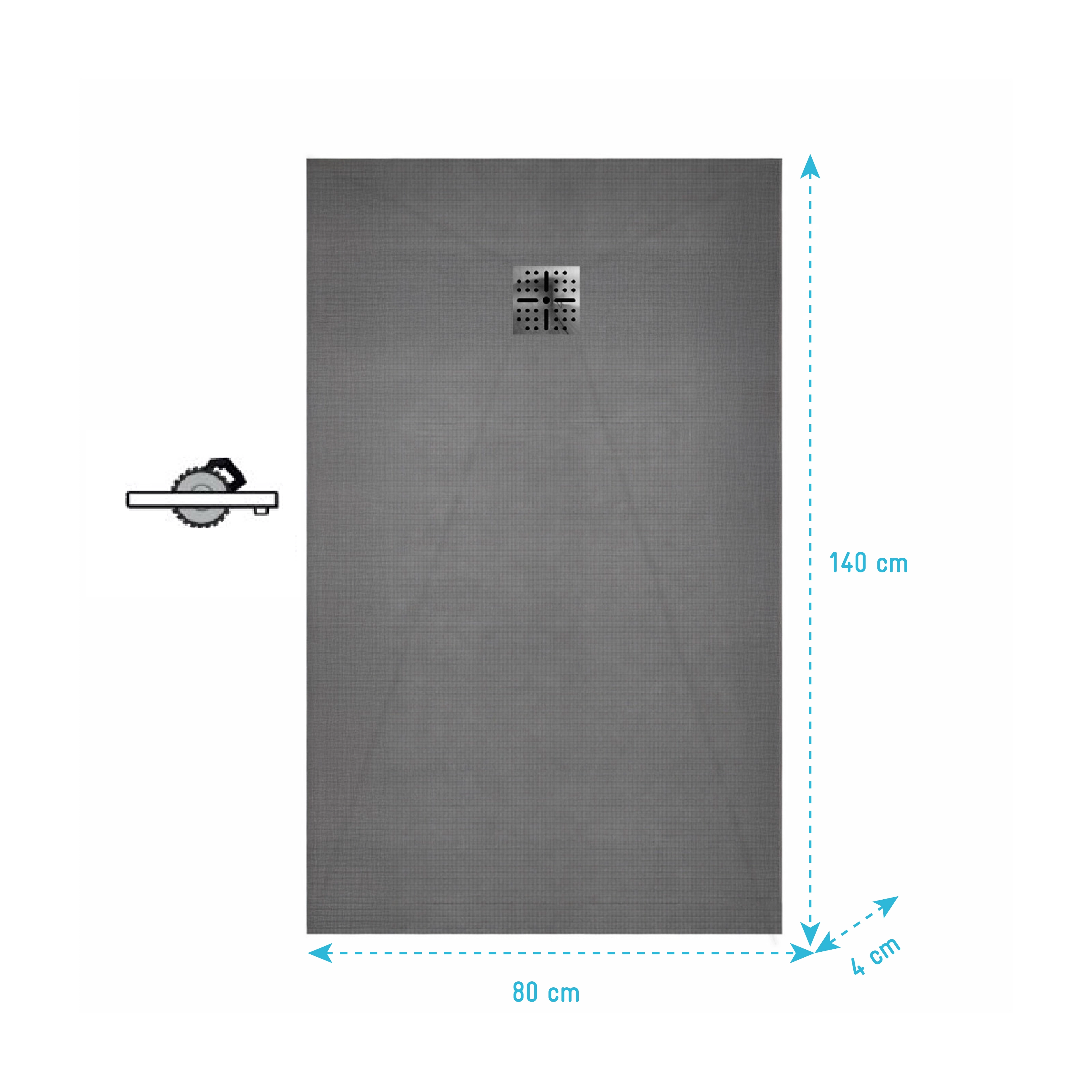 Receveur de Douche à Carreler 140×80cm à Ecoulement Linéaire - Grille Noire et Bonde