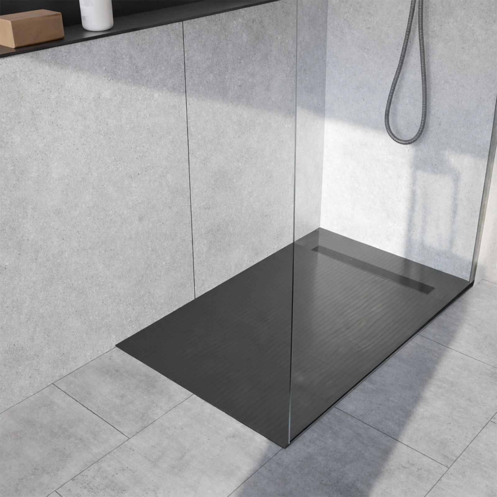 Les receveurs de douche à carreler avec caniveau linéaire.