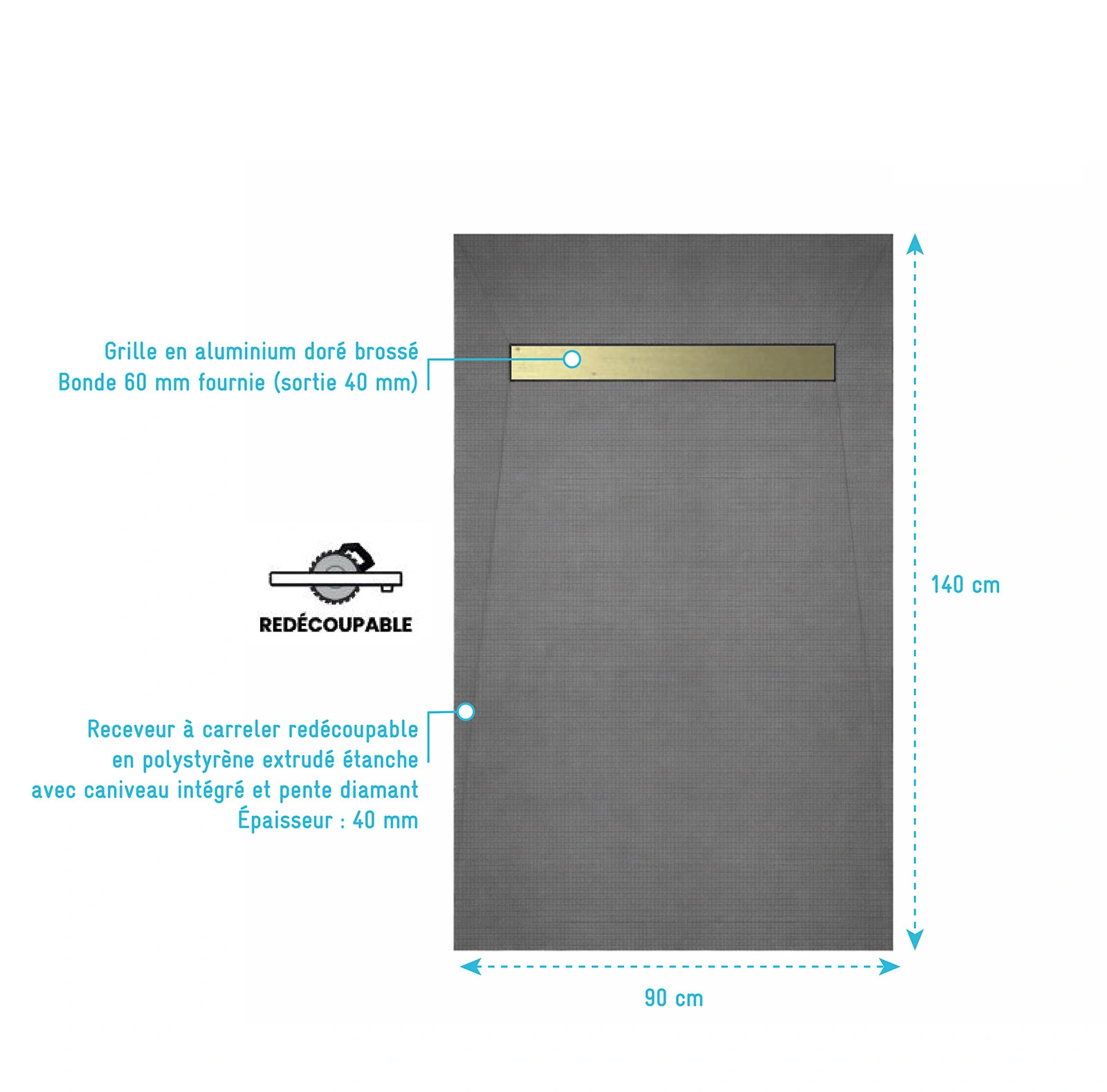 Fabriqué en polystyrène extrudé (XPS), il est naturellement hydrofuge, léger, simple à transporter et compatible avec tout type de colle à carrelage. Sa pente diamant assure une évacuation optimale de l’eau.