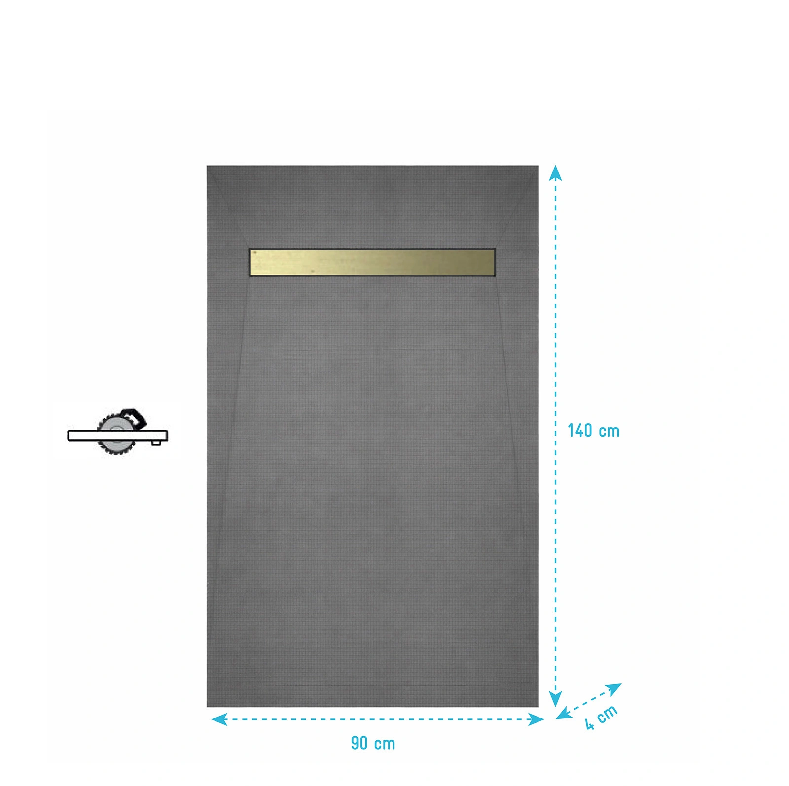 • Receveur de Douche à Carreler 140×90cm à Ecoulement Linéaire - Grille finition Or Brossé et Bonde