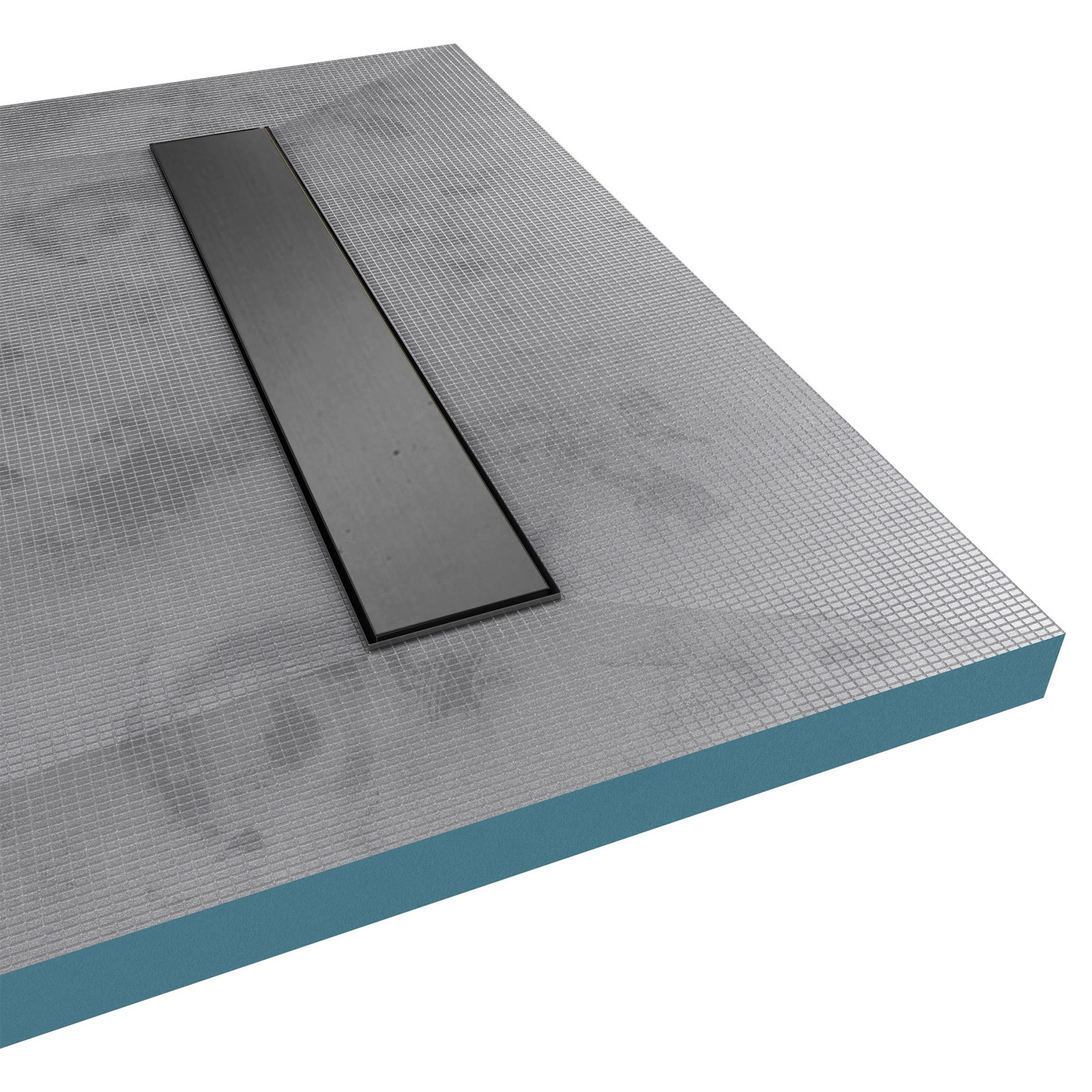 Receveur de Douche à Carreler 140×80cm à Ecoulement Linéaire - Grille Noire et Bonde
