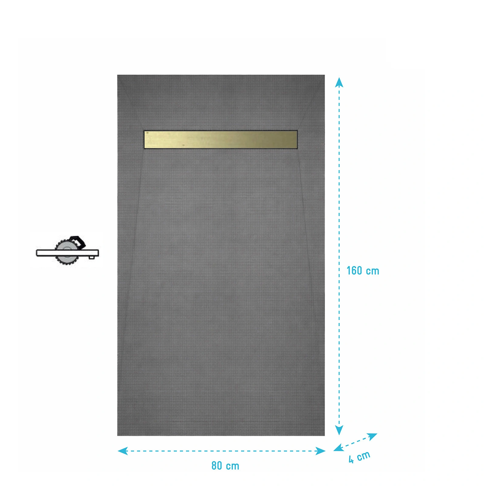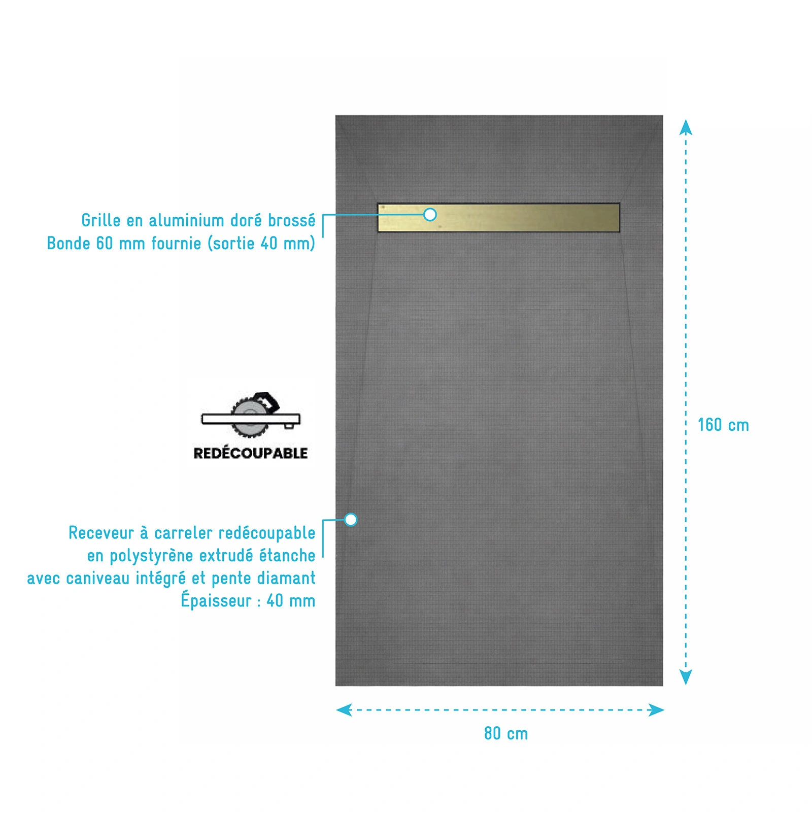Receveur de douche à carreler 160×80 cm avec bonde écoulement linéaire – Grille finition or brossé