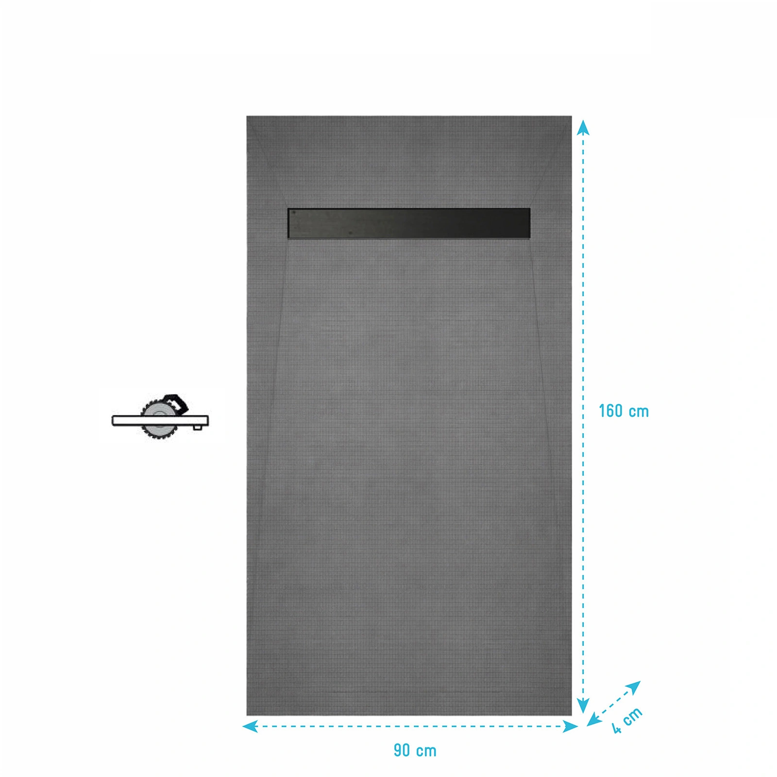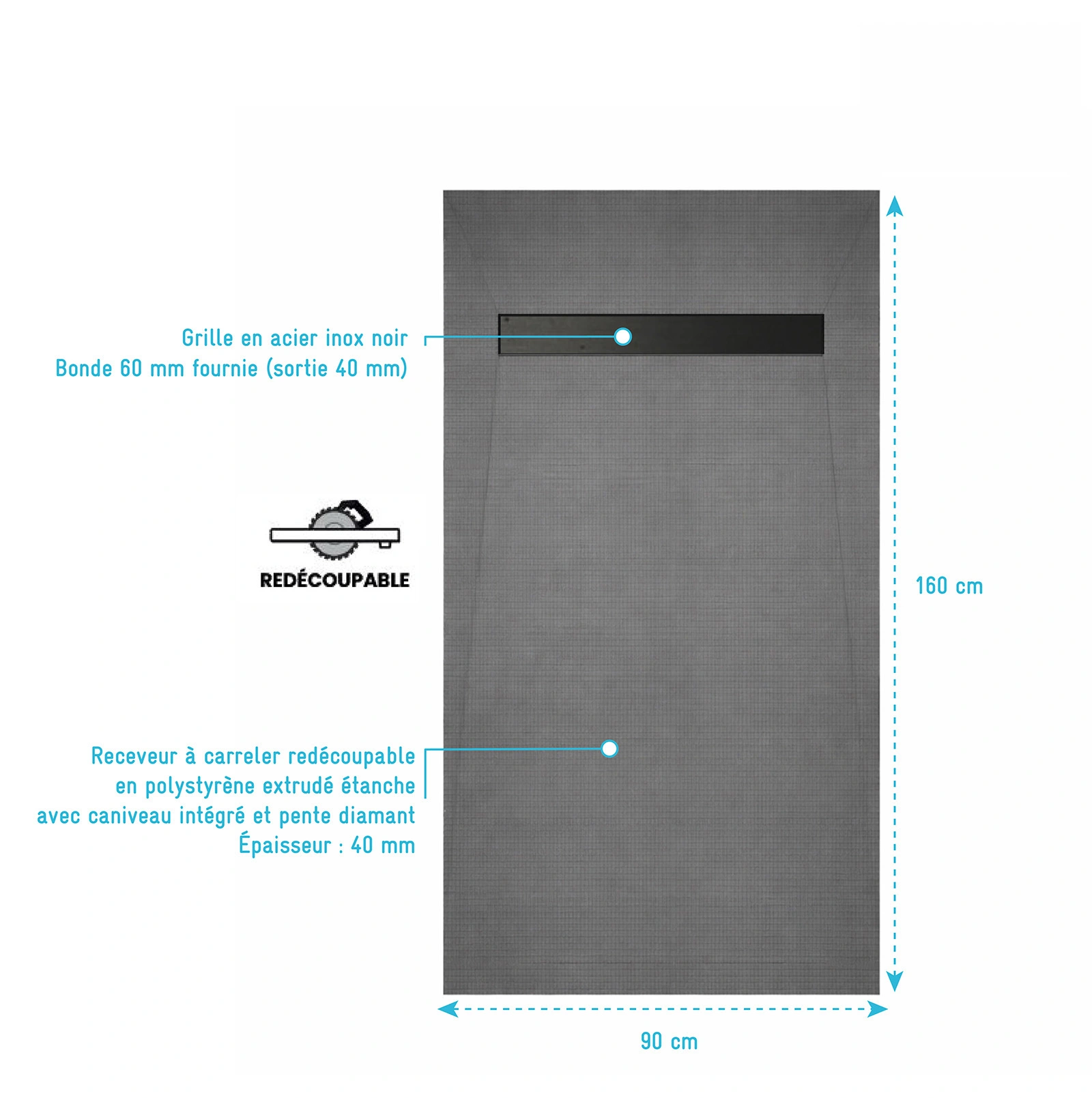Receveur de douche à carreler 160×90 cm avec bonde écoulement linéaire – Grille finition noire