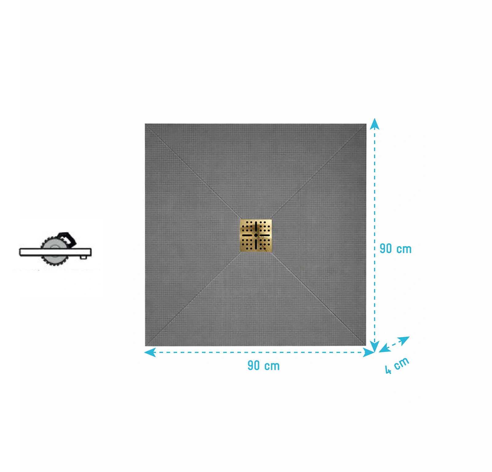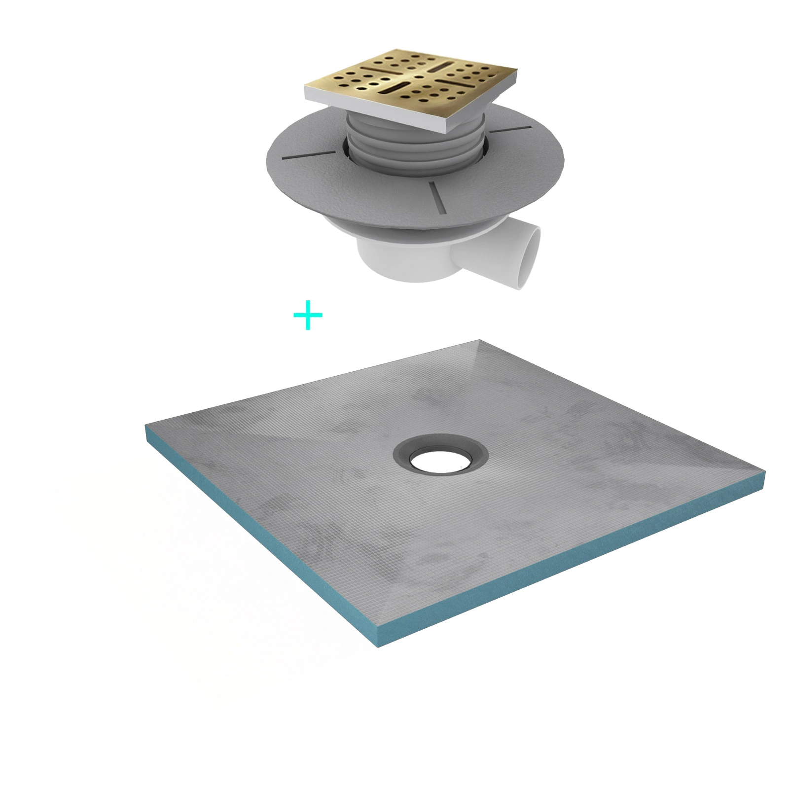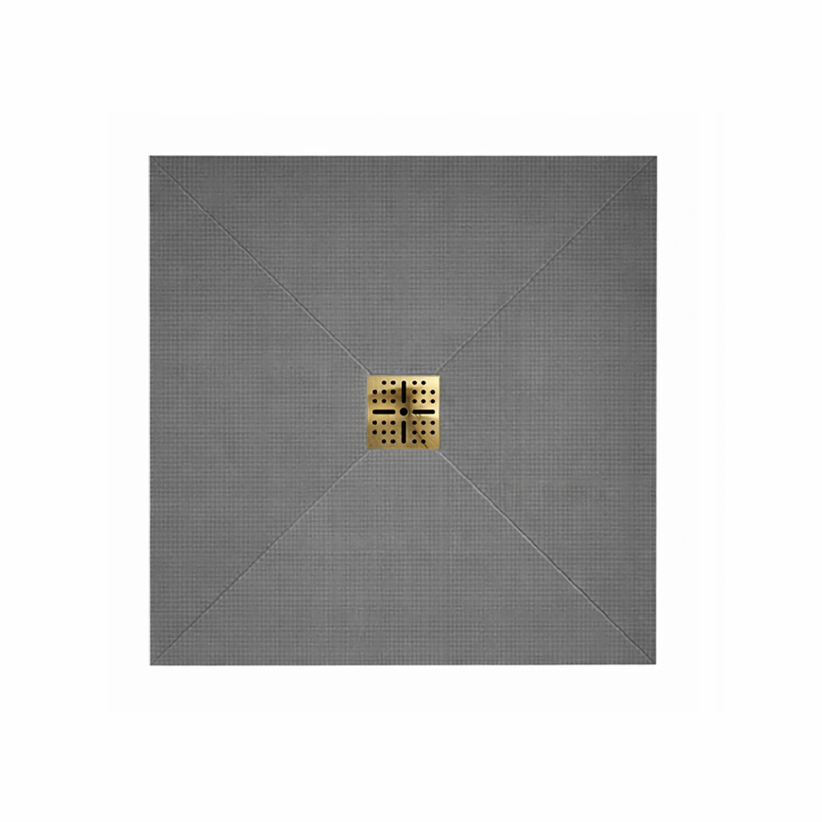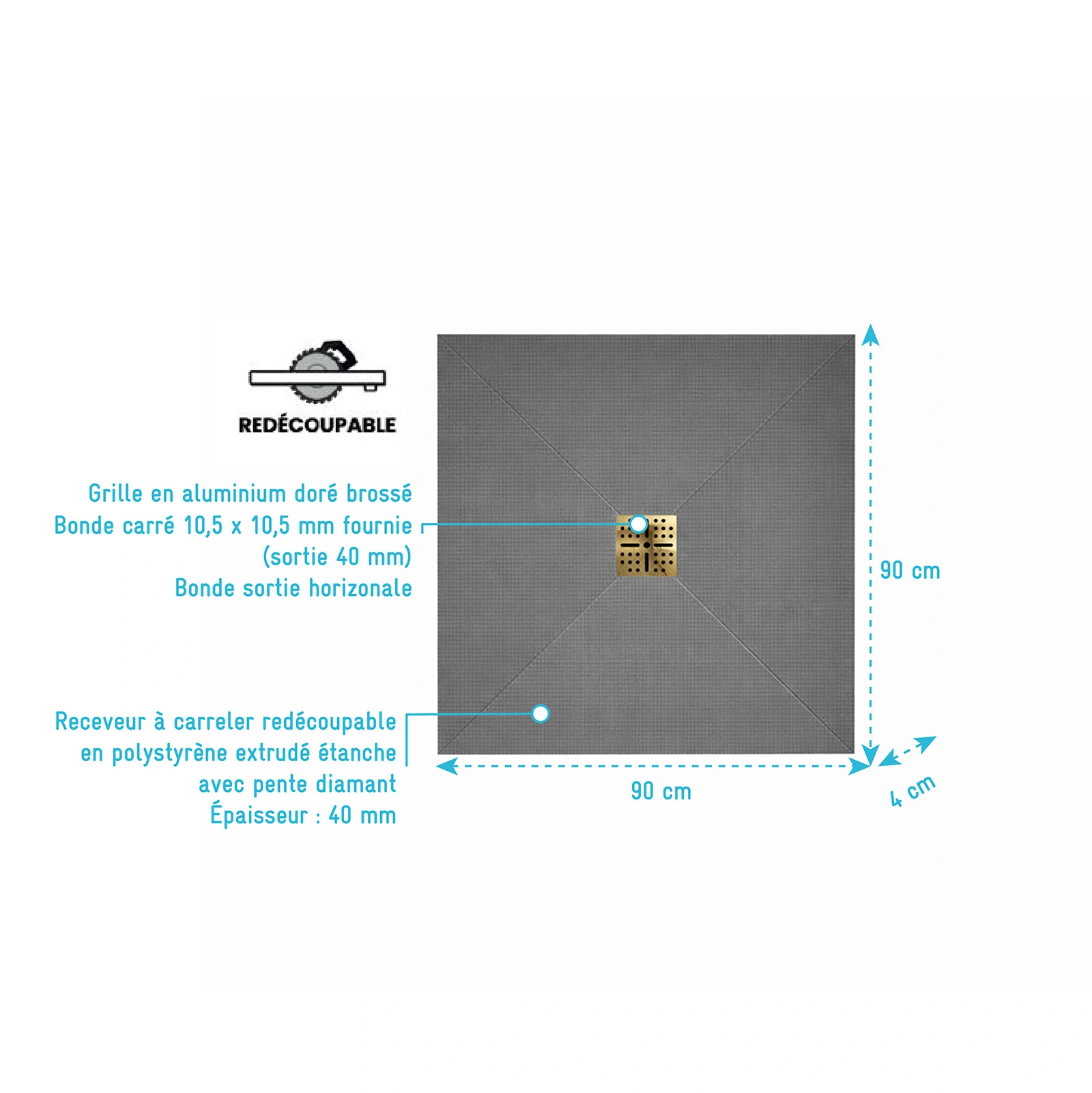 Receveur de Douche à Carreler 90x90cm avec Bonde à Sortie Horizontale – Grille Finition Or Brossé