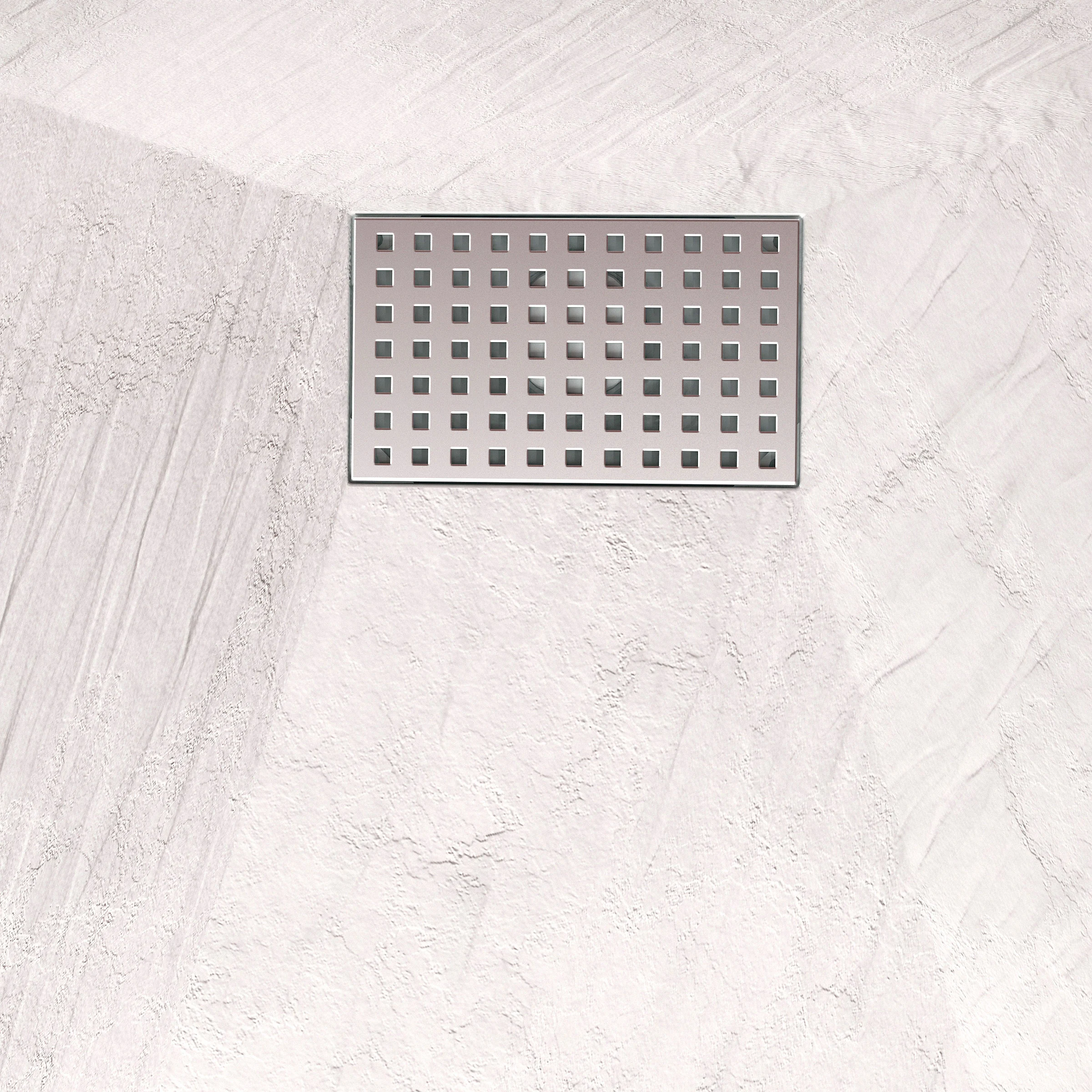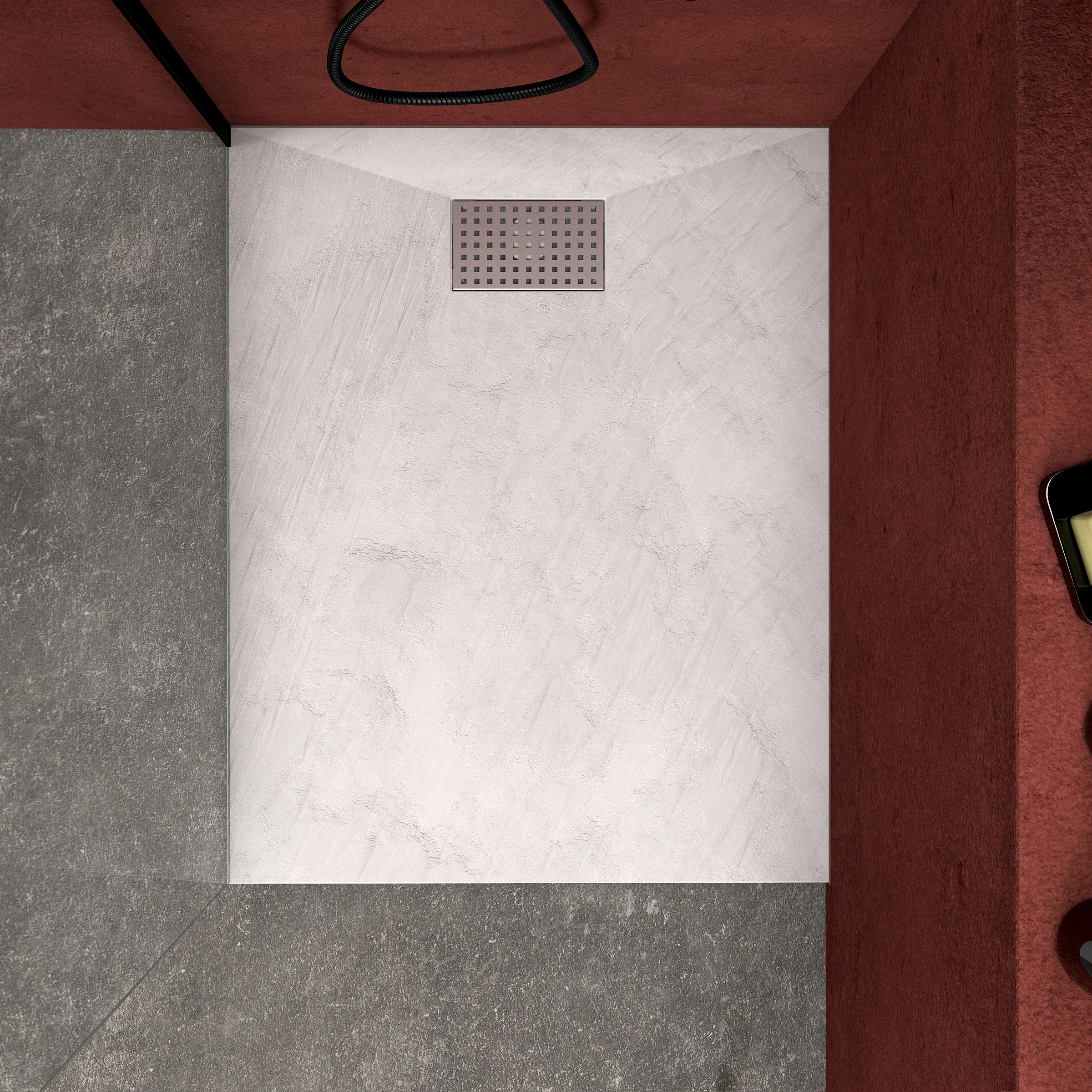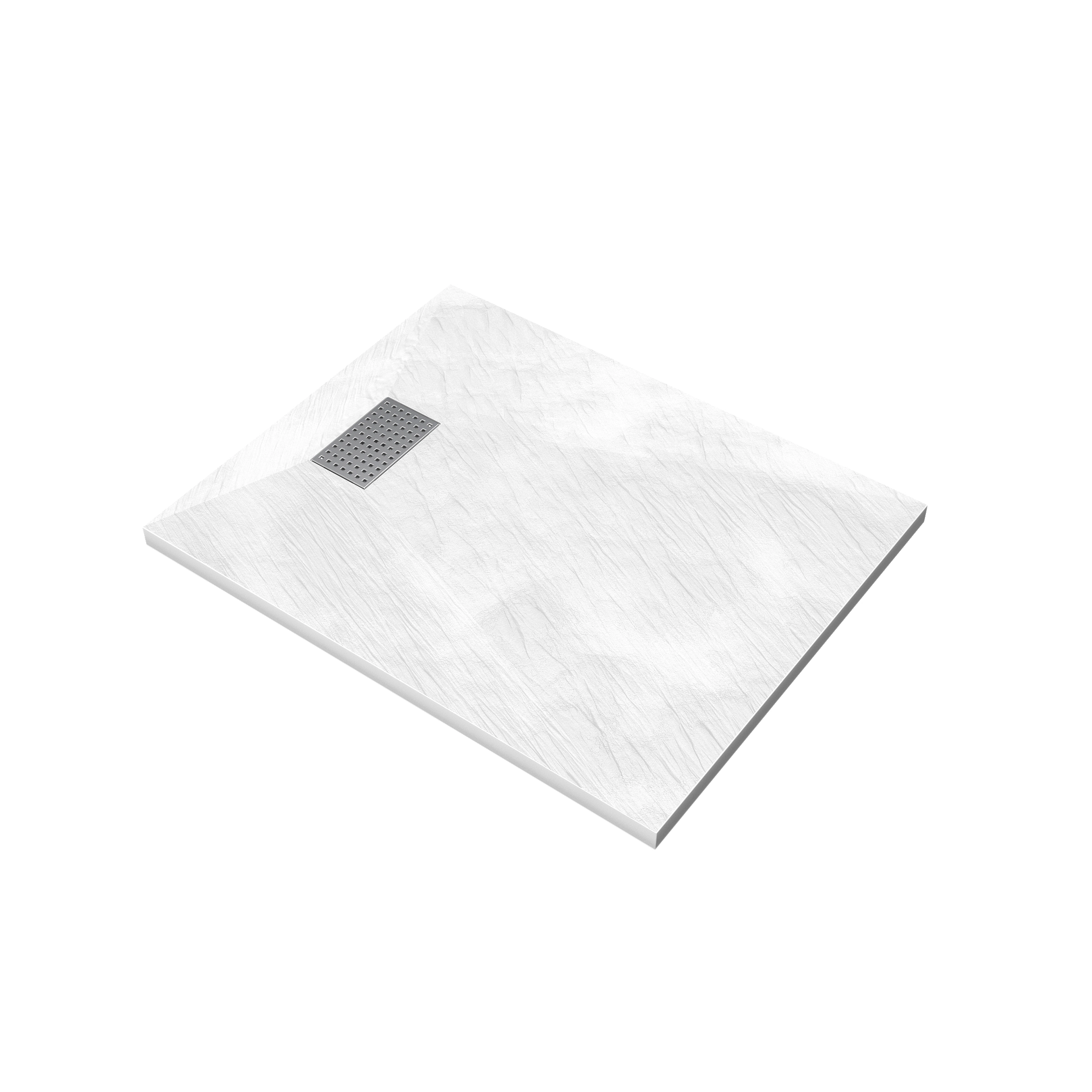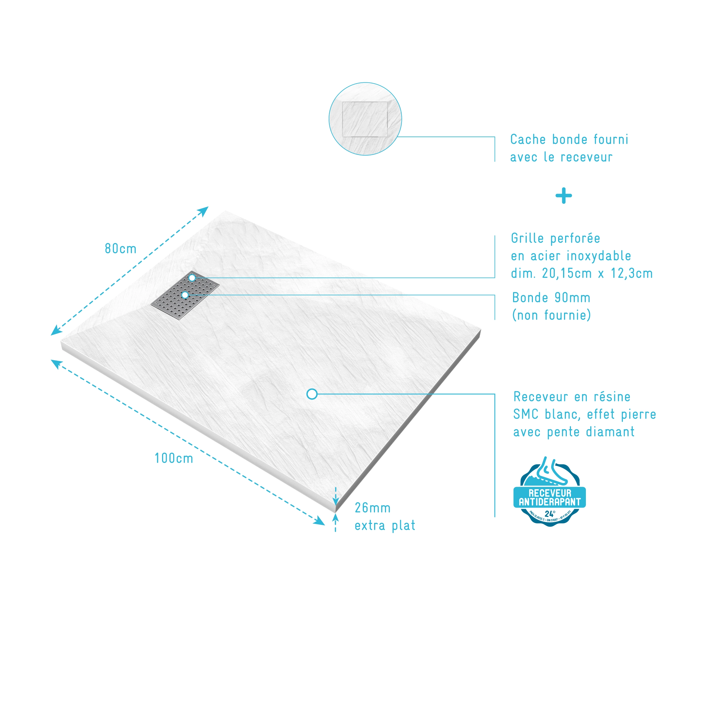 Receveur de douche Blanc Effet Pierre 80×100 cm et Grille décor Perforée en Inox