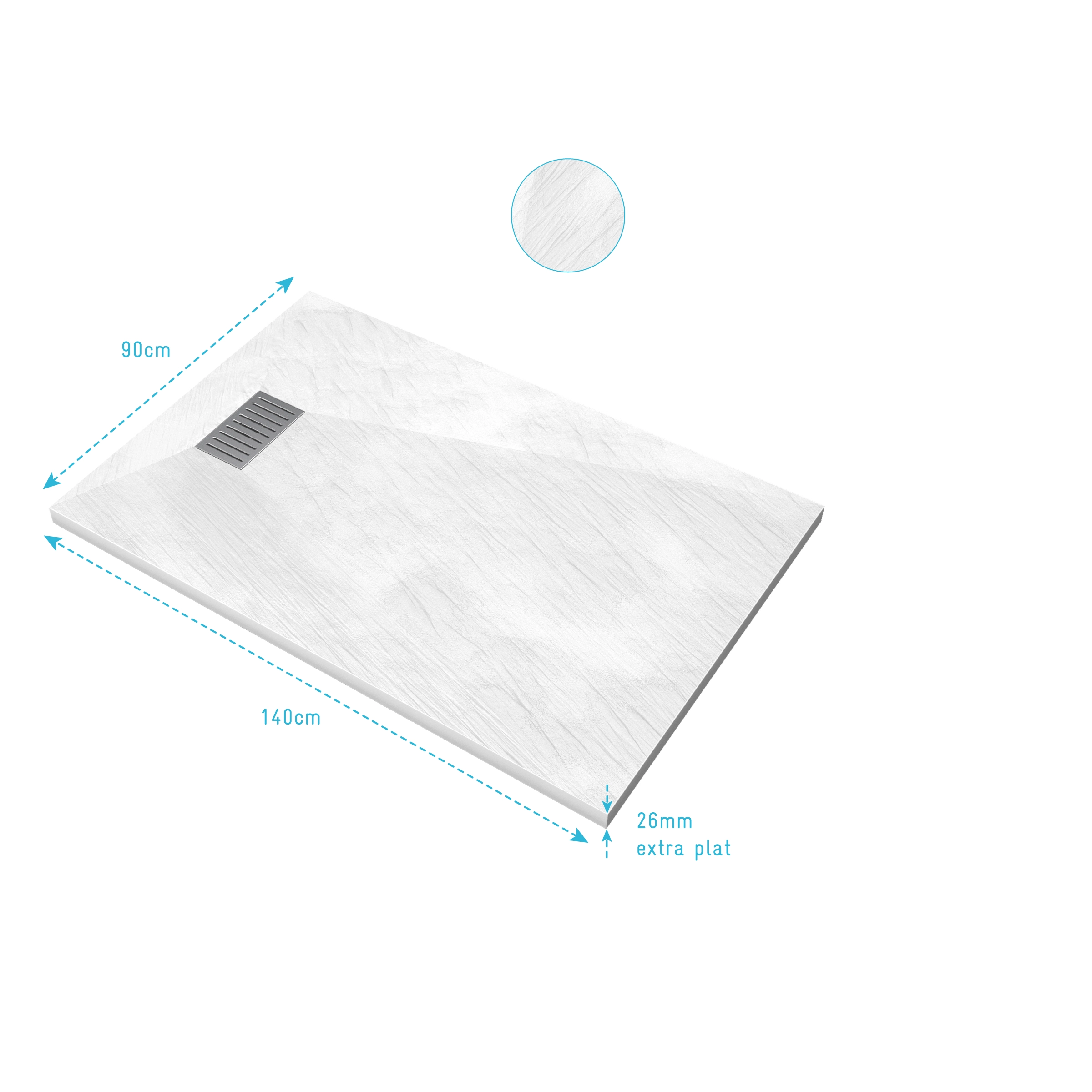 6 avis pour Receveur de douche Blanc Effet Pierre 90×140 cm et Grille décor Linéaire en Inox
