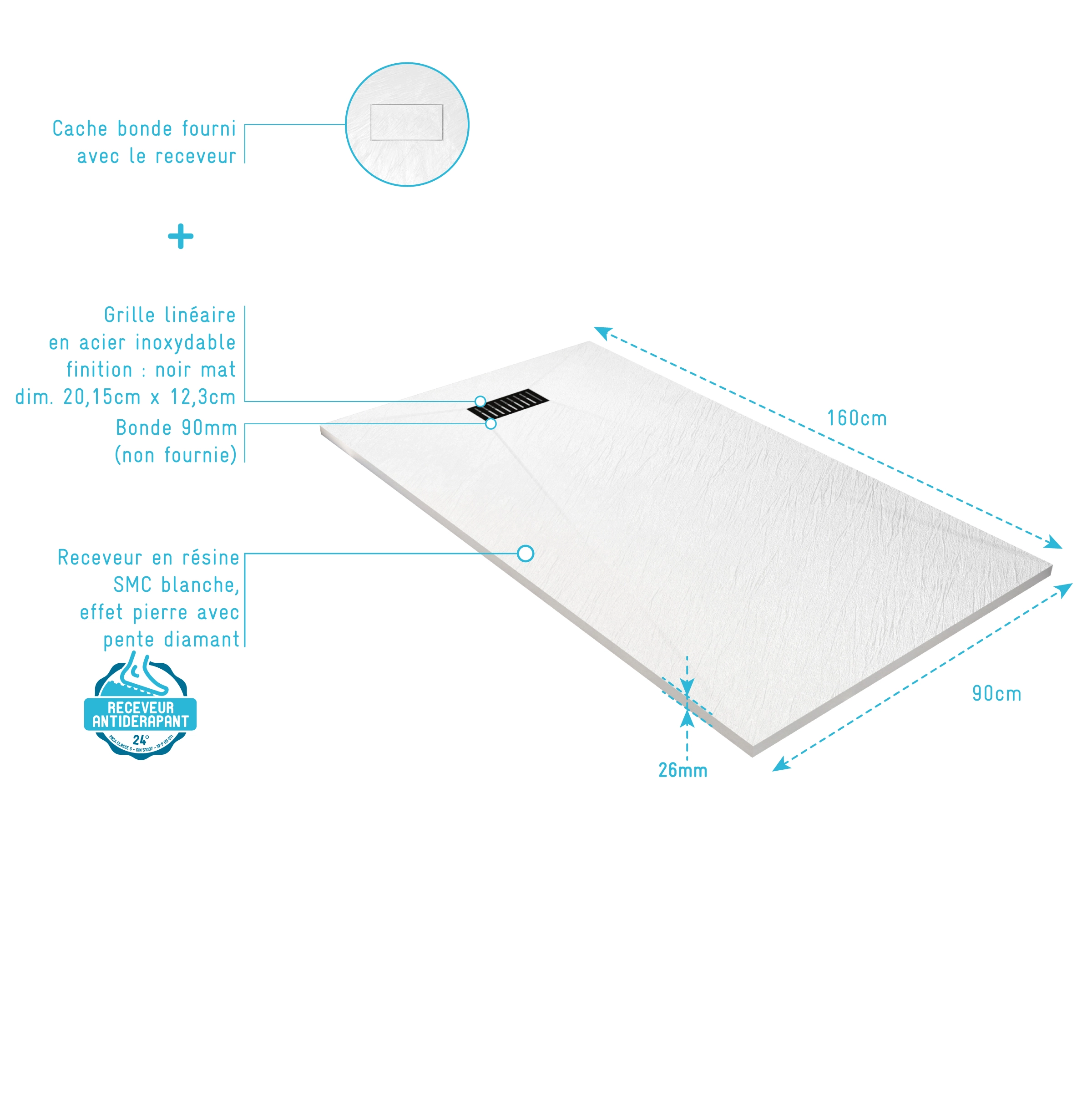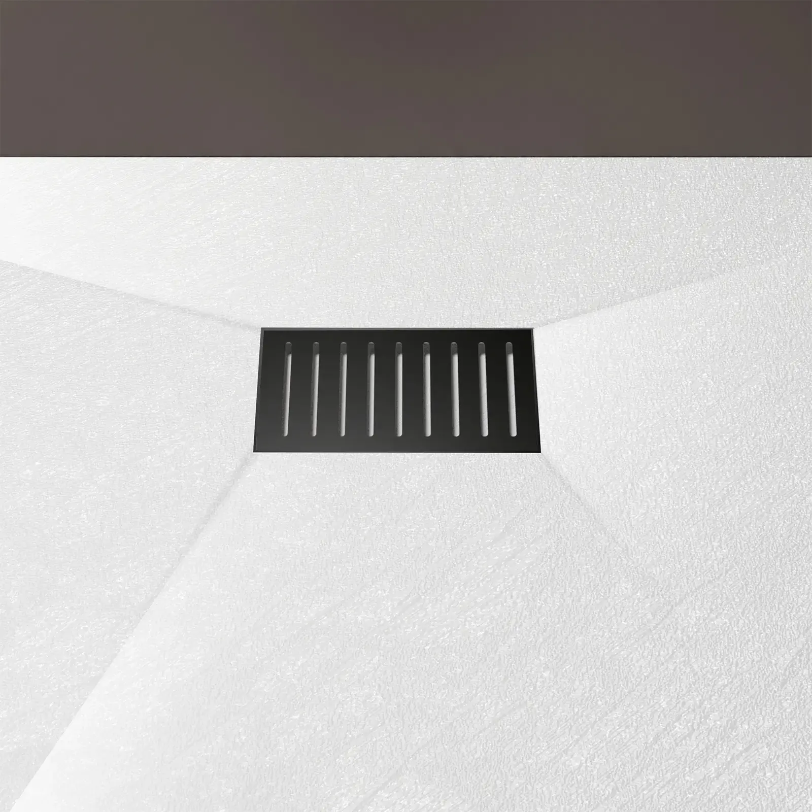 Receveur de douche Blanc Effet Pierre 90×160 cm et Grille décor Linéaire Noire Mate