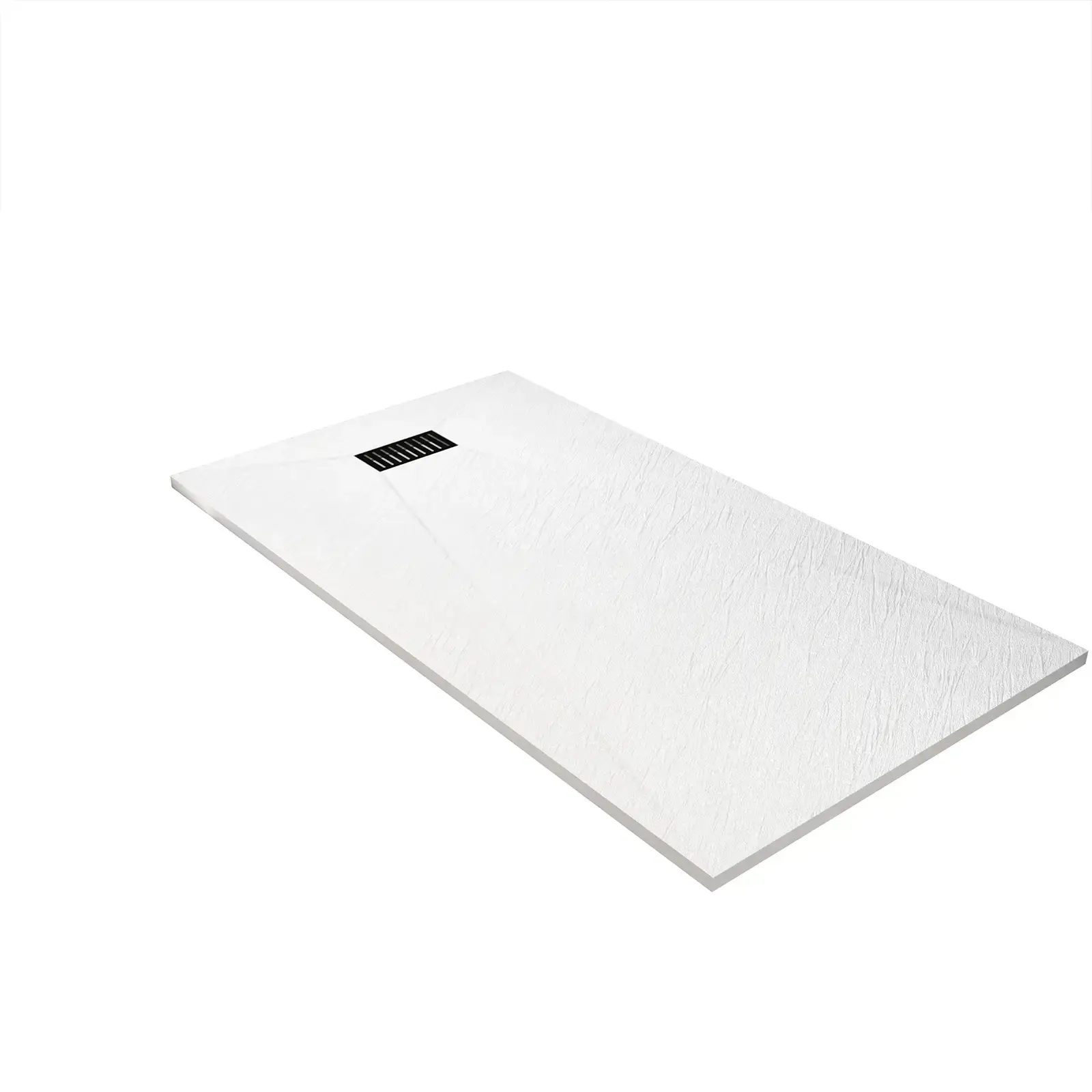 Receveur de douche Blanc Effet Pierre 90x160 cm et Grille décor Linéaire Noire Mate
