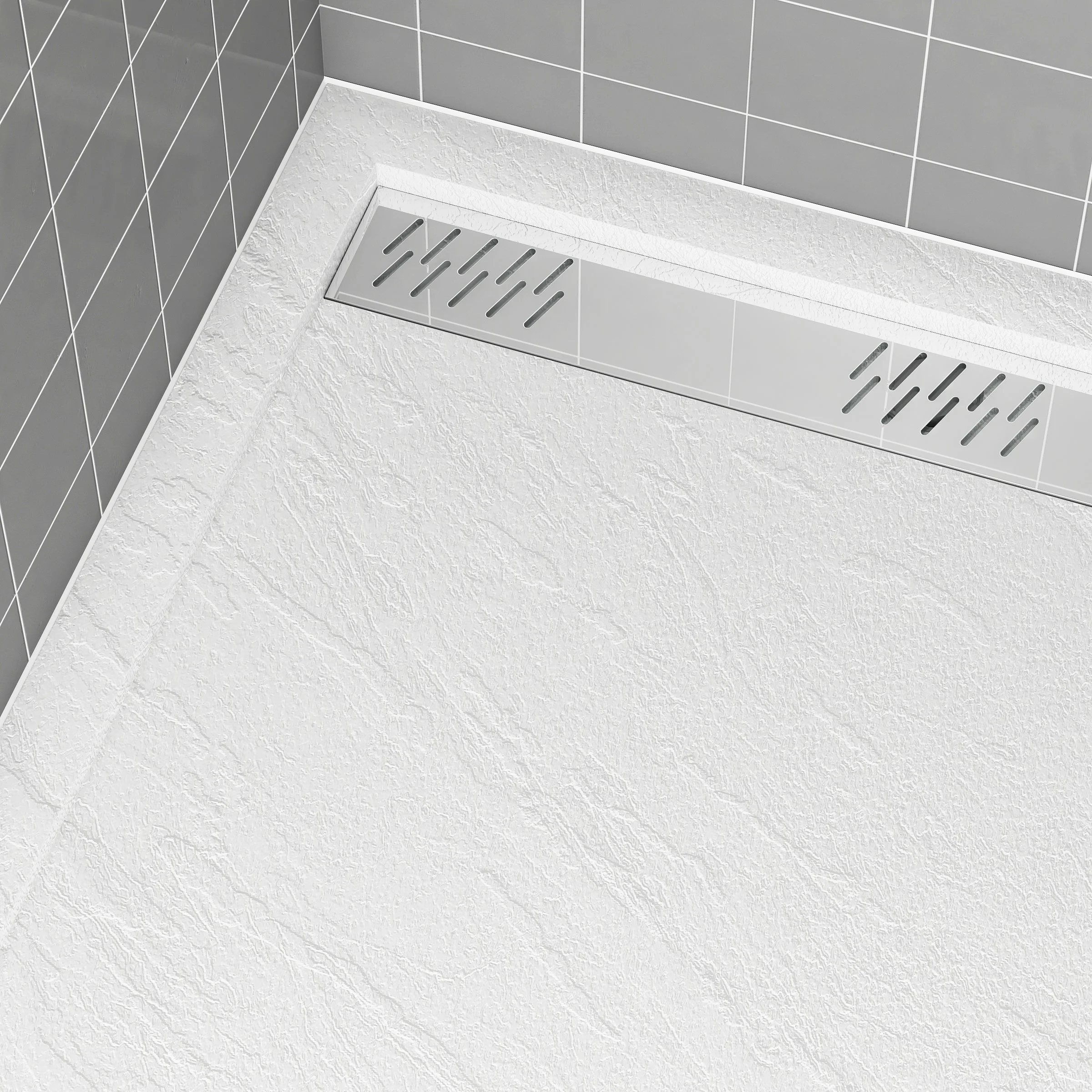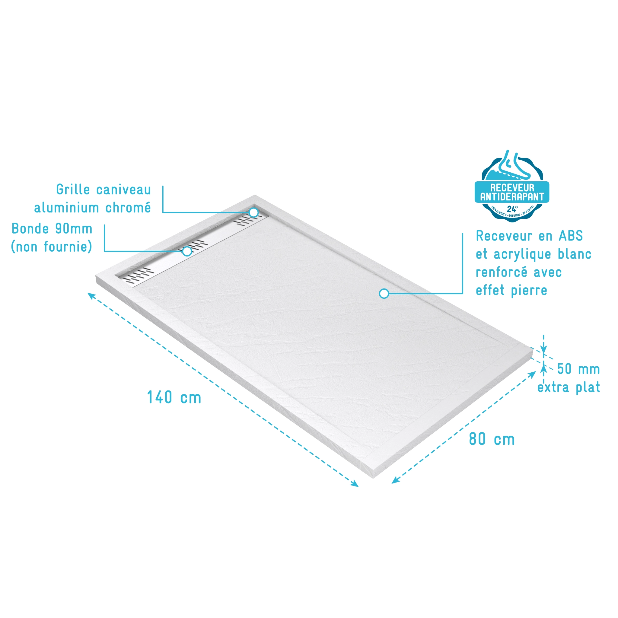 Receveur en acrylique Blanc Effet Pierre 80x140x5 cm – Grille Linéaire Chrome – MOON